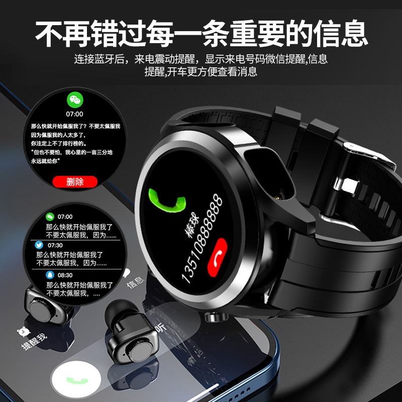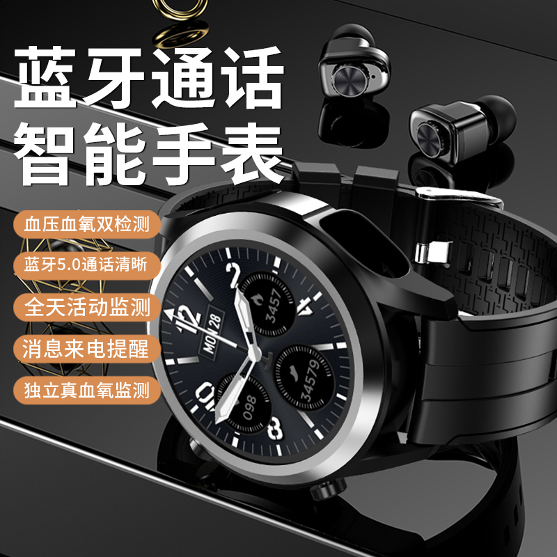 Smart watch bluetooth headset two-in-one call MP3 music listening multi-function bracelet binaural music playback sports step meter male and female heart rate measurement suitable for apple oppo Huawei vivo Xiaomi