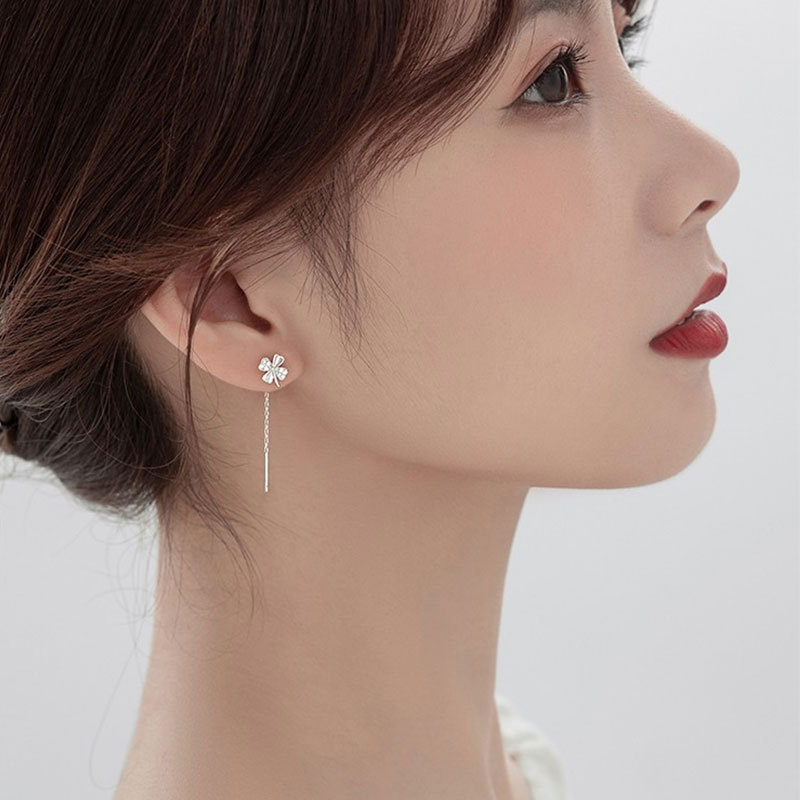 Four Leaf Straw Bracelet 2022 New Temperament Earshot Woman 925 silver decoration Japan-ROK 100 hitches advanced sensation ear decoration