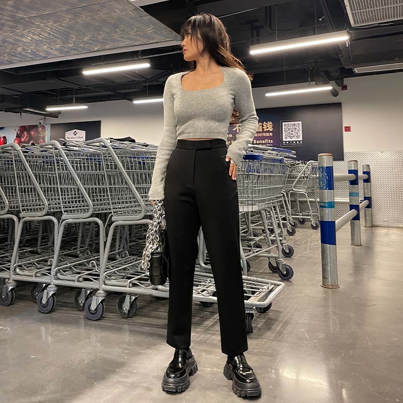 LEIYU Cavet 90% Western Pants Woman Winter 2021 New High Waist Thickening Black Robe Pants Ins Casual Pants