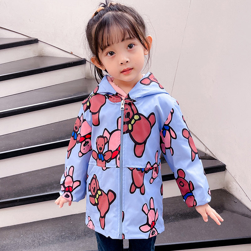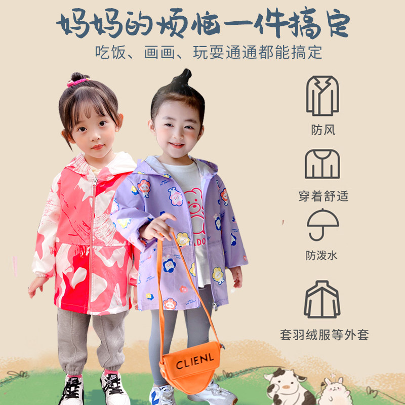 Girl Waterproof Hood Coat Long Sleeve Autumn Winter Down Clothing Anti Dirty Protective Clothing Cute Drawing Apron Baby Eating Apron Pocket