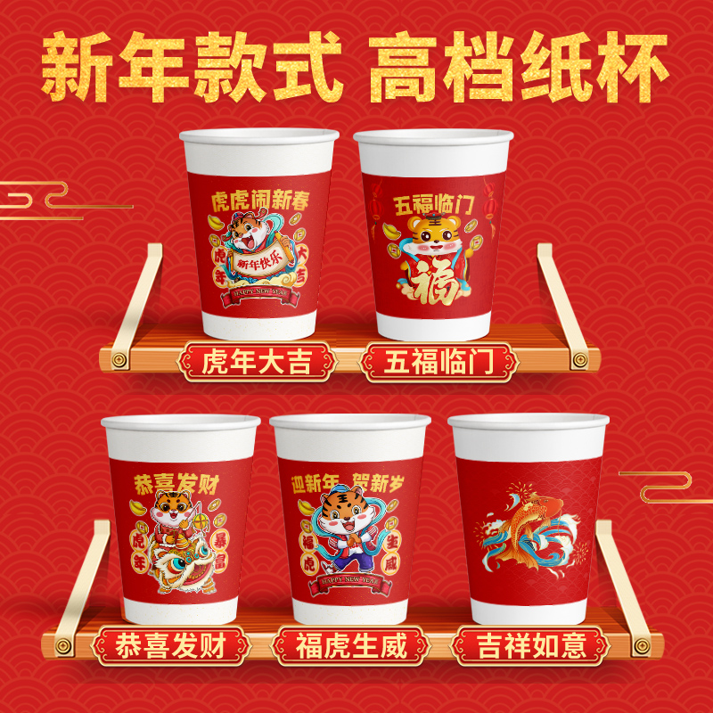 Year of the Tiger paper cup high-end disposable cup household New Year thickening festive net red national tide Chinese New Year Spring Festival New Year's goods