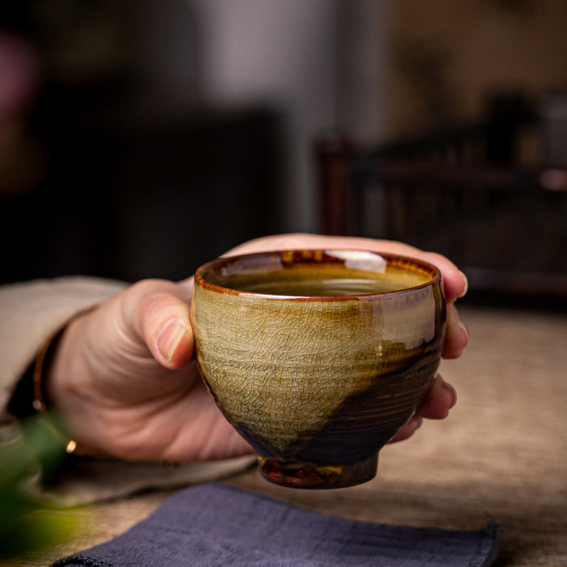 Antique firewood burning master cup Japanese handmade rough pottery tea cup ceramic household single cup retro kung fu tea set tea cup