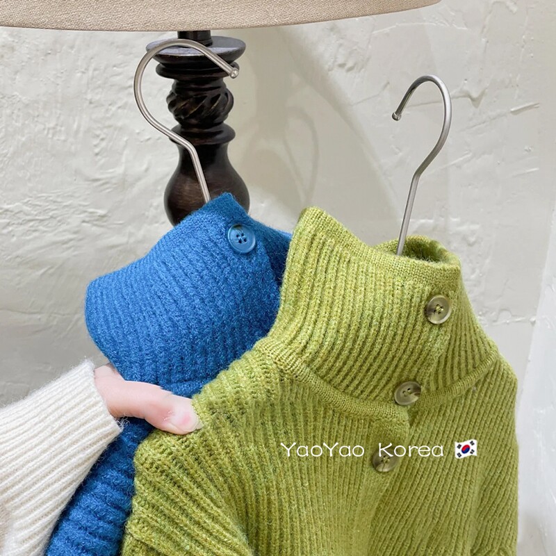 Blue High Collar Knit Cardiatshirt Ink Green High Collar Knit Cardion