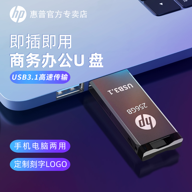 HP usb3 1 genuine high-speed on-demand disc 256g metal custom lettering logoU pan official business mobile office personality high face value mobile phone computer dual-use large capacity USB accompanying disc 1