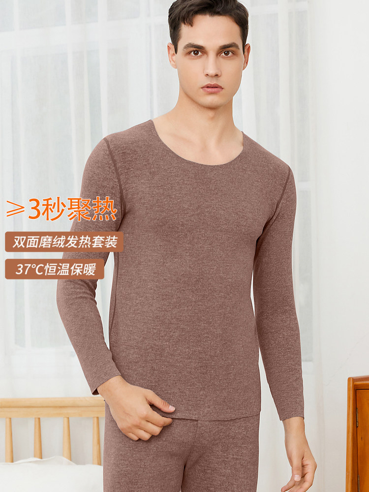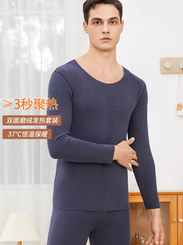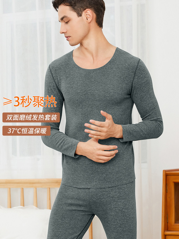 Men's indentation heat warm underwear set of hot and plumbing young lad neck pure cotton autumn pants winter