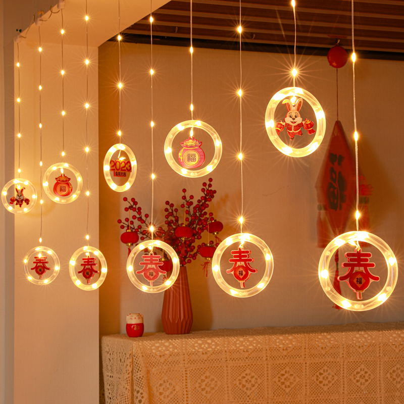 2023 Year of the Rabbit New Year Decoration Spring Festival Indoor Scene Layout Hanging Decorations Small Colored Lights Flashing New Year Ornaments Full of Stars