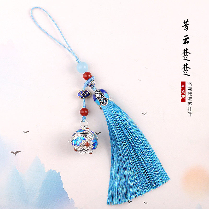 Sachet tassel pendant (sky blue) with a lamp bead and a scented pill Sachet tassel pendant (black) with a lamp bead and a scented pill Sachet tassel pendant (dark green) with a lamp bead and a scented pill
