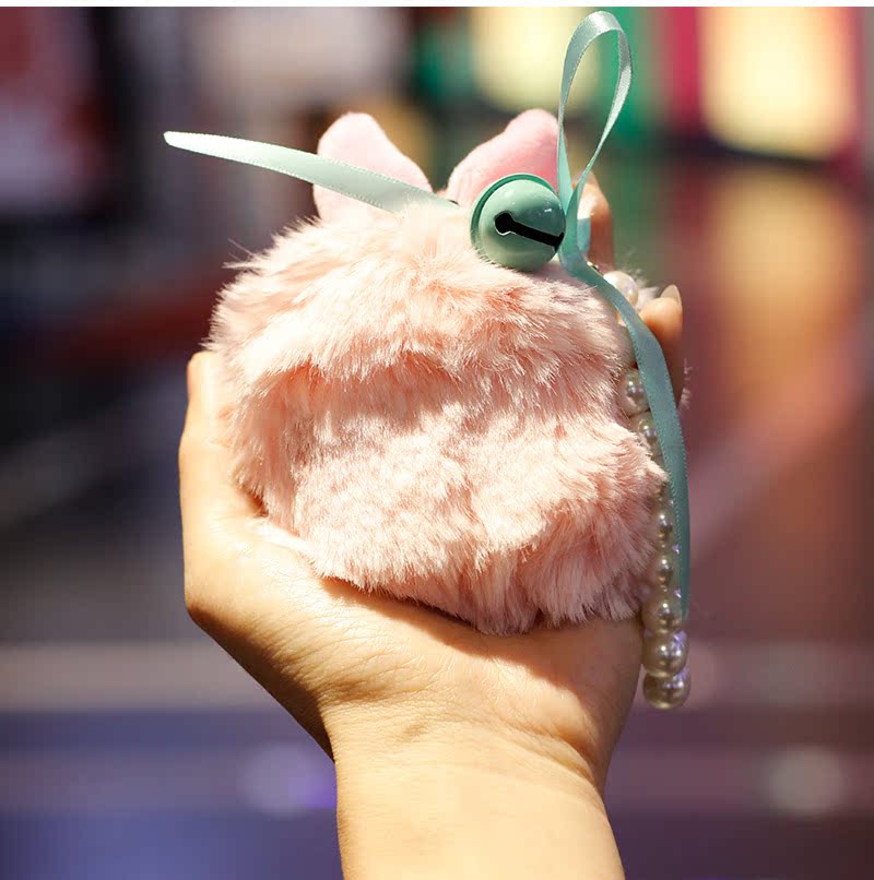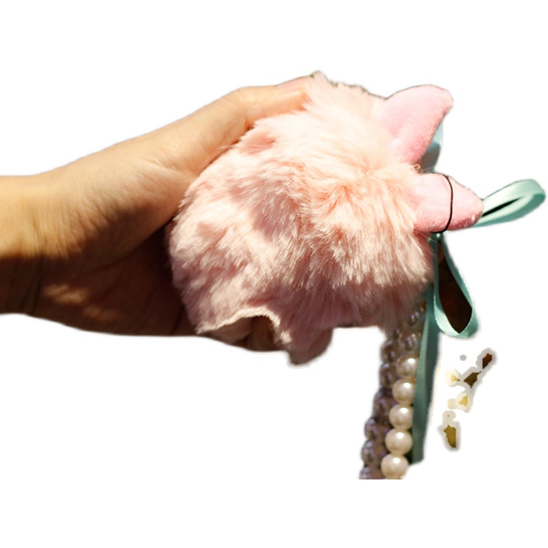 AirPods1 2 Pink Plush Cover AirPods1 2 Pink Plush Cover Pearl Chain