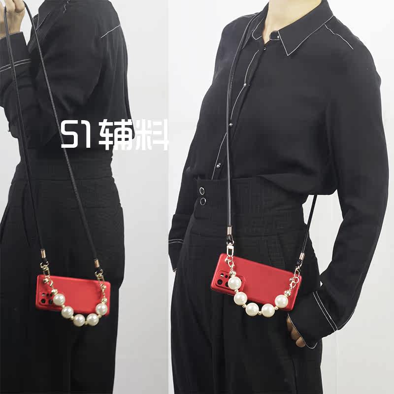 Imitation Pearl Bead Chain Hand Grab Bag Carry with Divine Instrumental Handshell Renovation Wash Toiletry Bag Shoulder Strap Hanging Buckle DIY Accessories