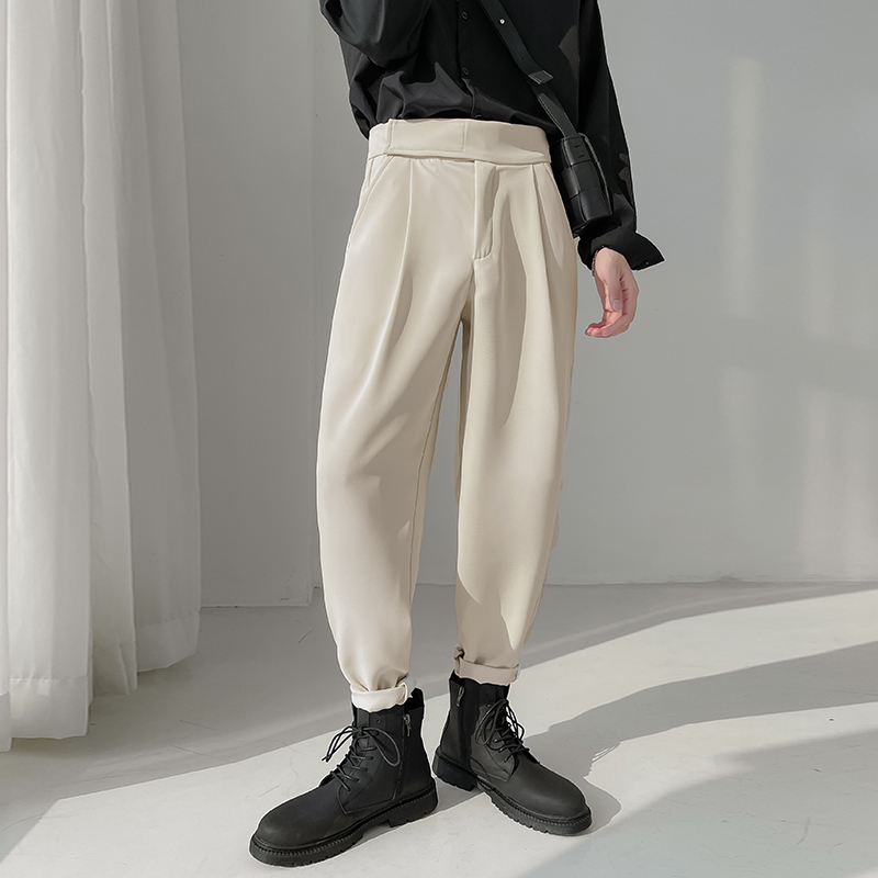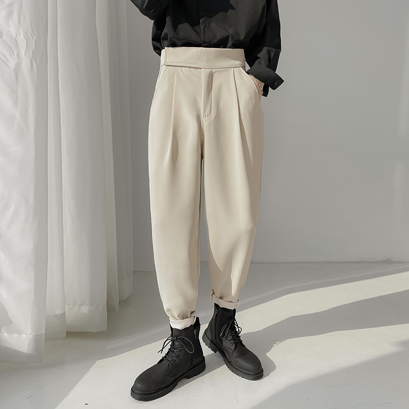 Winter plus velvet trousers men's trendy slim fit corset trousers drape close-fitting skin-friendly cigarette pants solid color all-match pants handsome