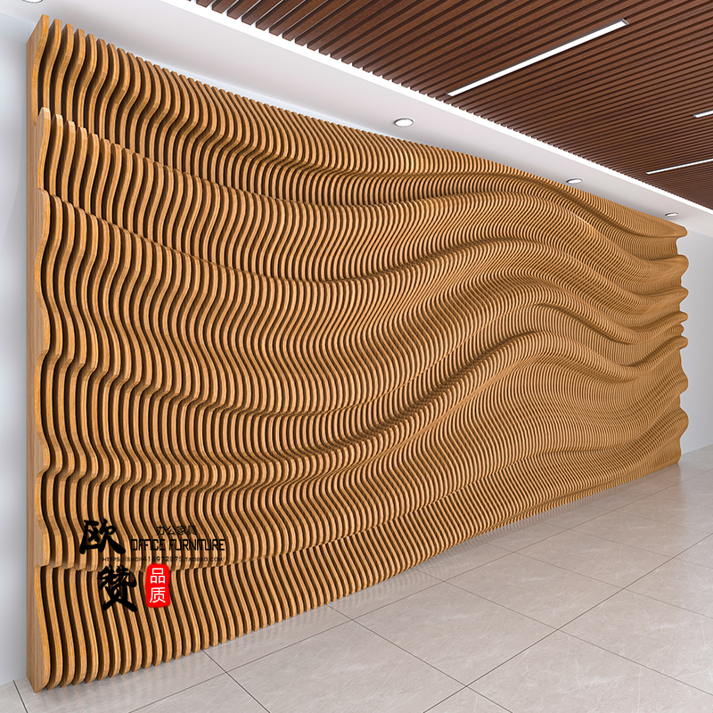Sliced background wall company hotel image wall hall exhibition hall special-shaped curved surface image wall wooden paint board customization