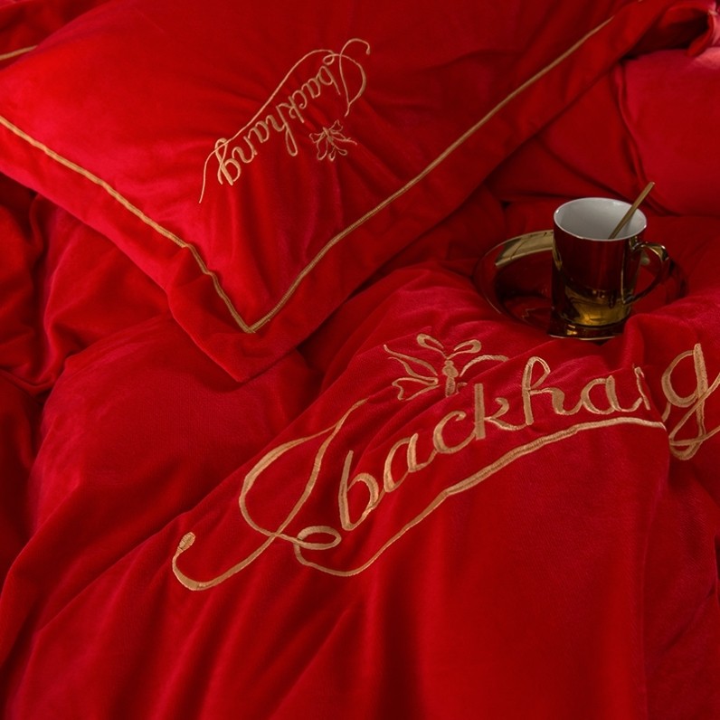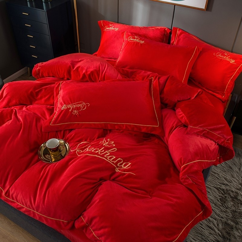 Wedding Four Pieces Sets 2021 New Tide Red Color Ensemble Wedding Superior High End 100 Subplot Bedding Four Pieces Of Kit