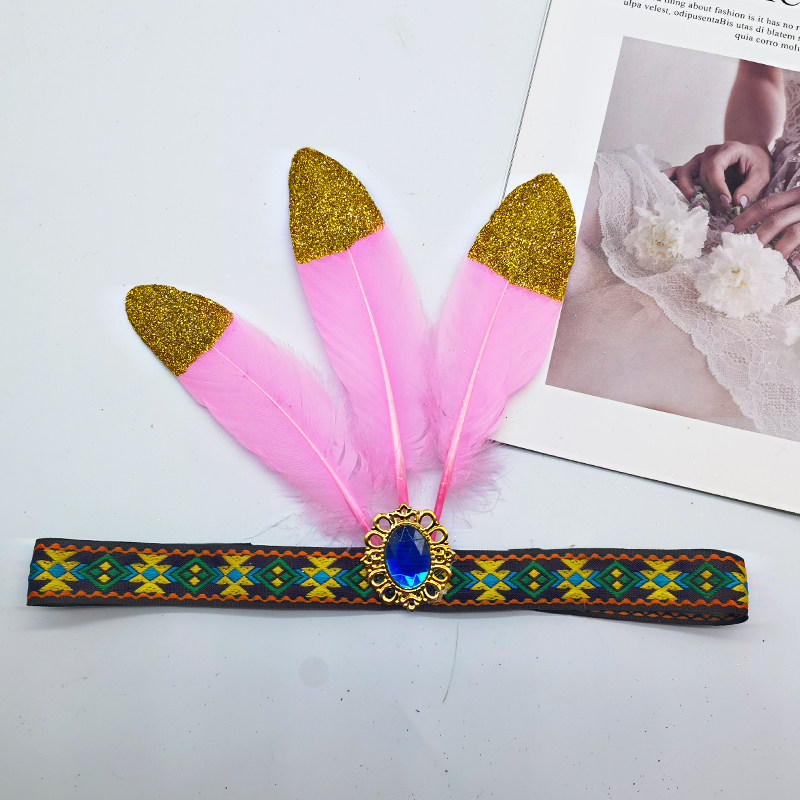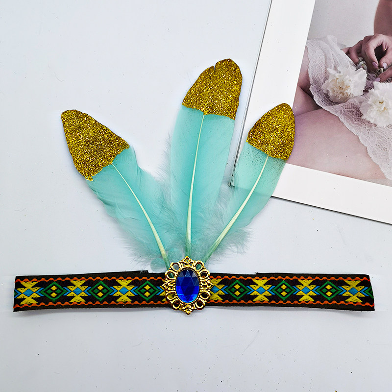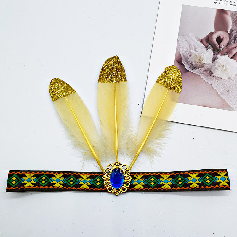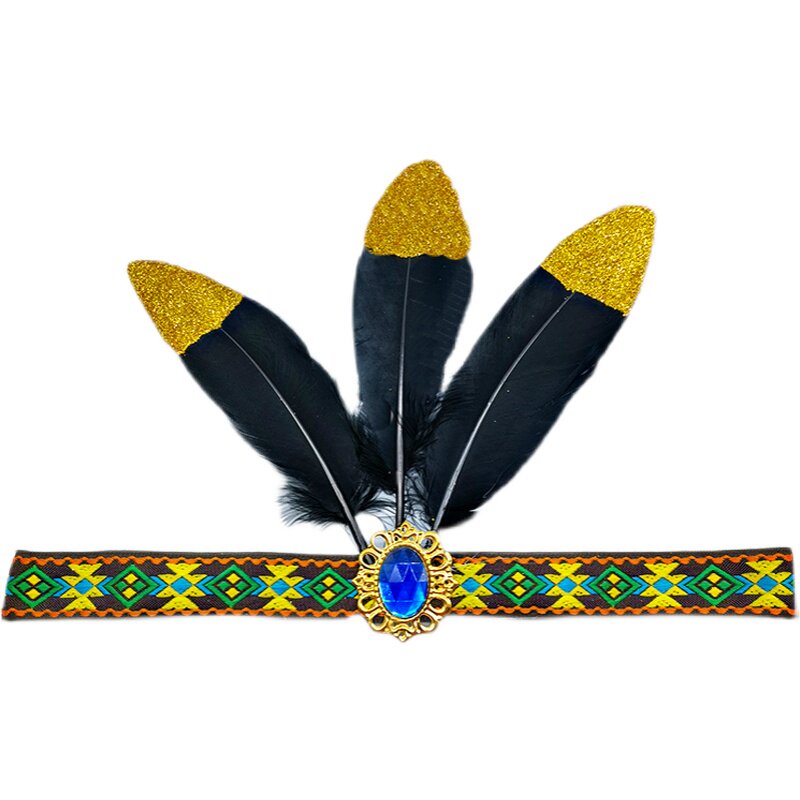 African drum Indian headband ethnic style feather headdress stage performance spray gold high-grade chicken feather headband headband