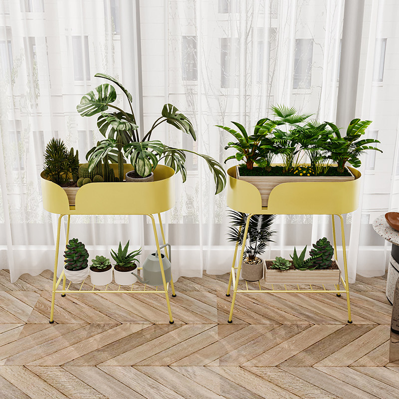 Light luxury wrought iron flower stand floor-to-ceiling shelf indoor living room balcony multi-storey flower shop display stand gold ge succulent flower pot