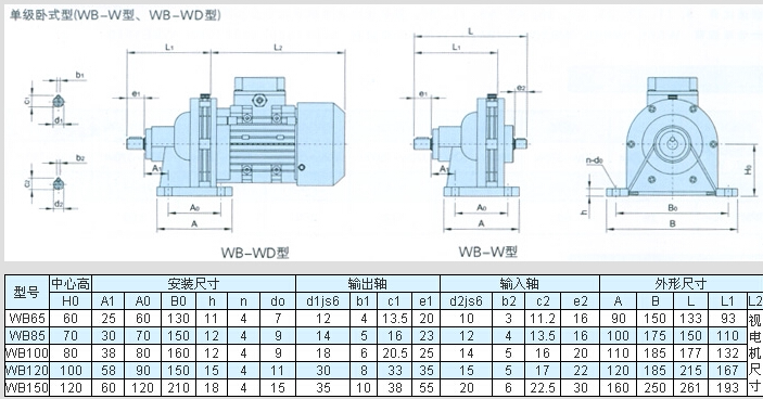 WB65-90W shaft 12WB65-120W shaft 12WB65-180W shaft 12WB85-120W shaft 14WB85-180W shaft 14W