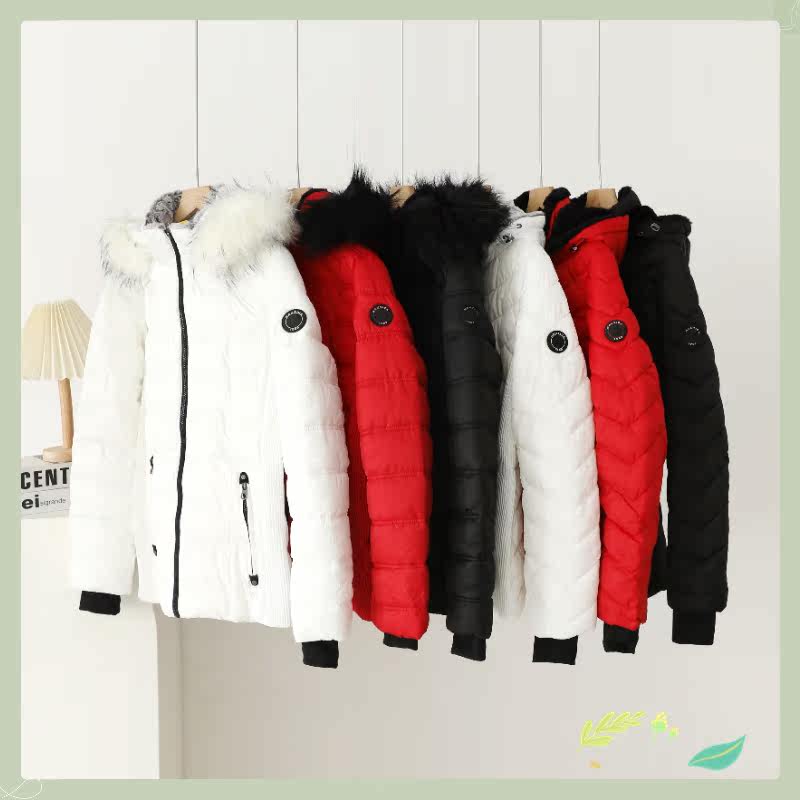 2022 autumn and winter new women's waist-padded clothes with detachable hats are very warm and comfortable