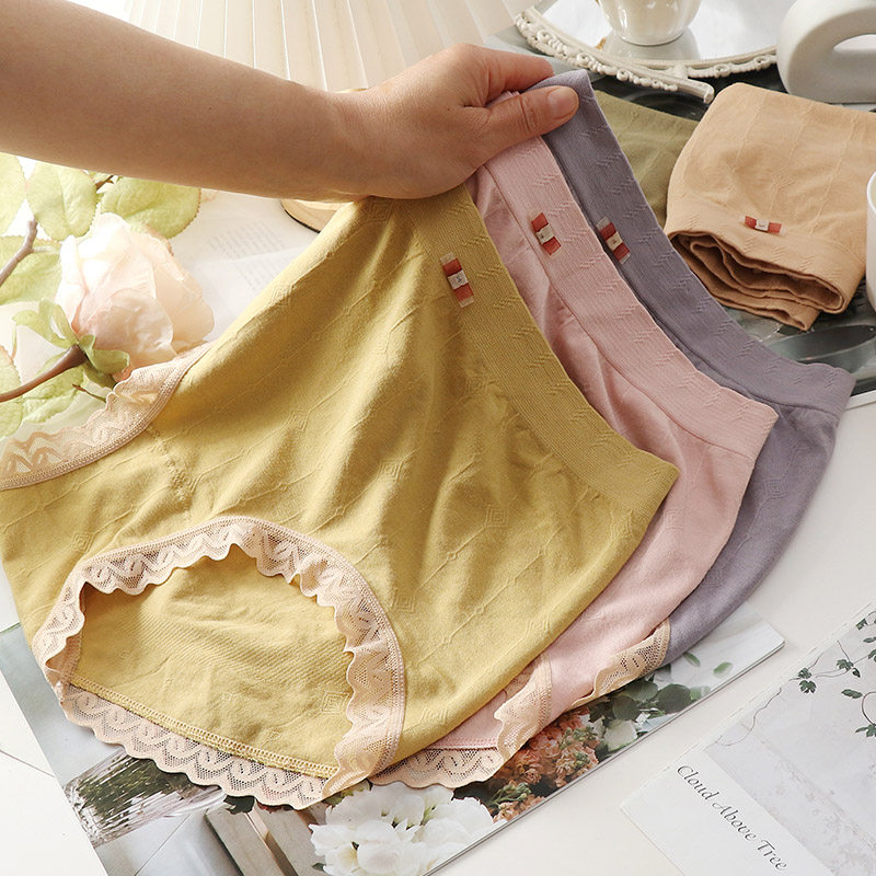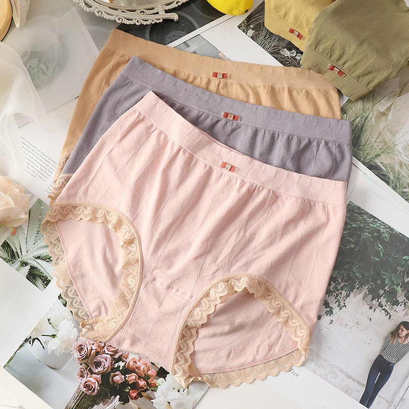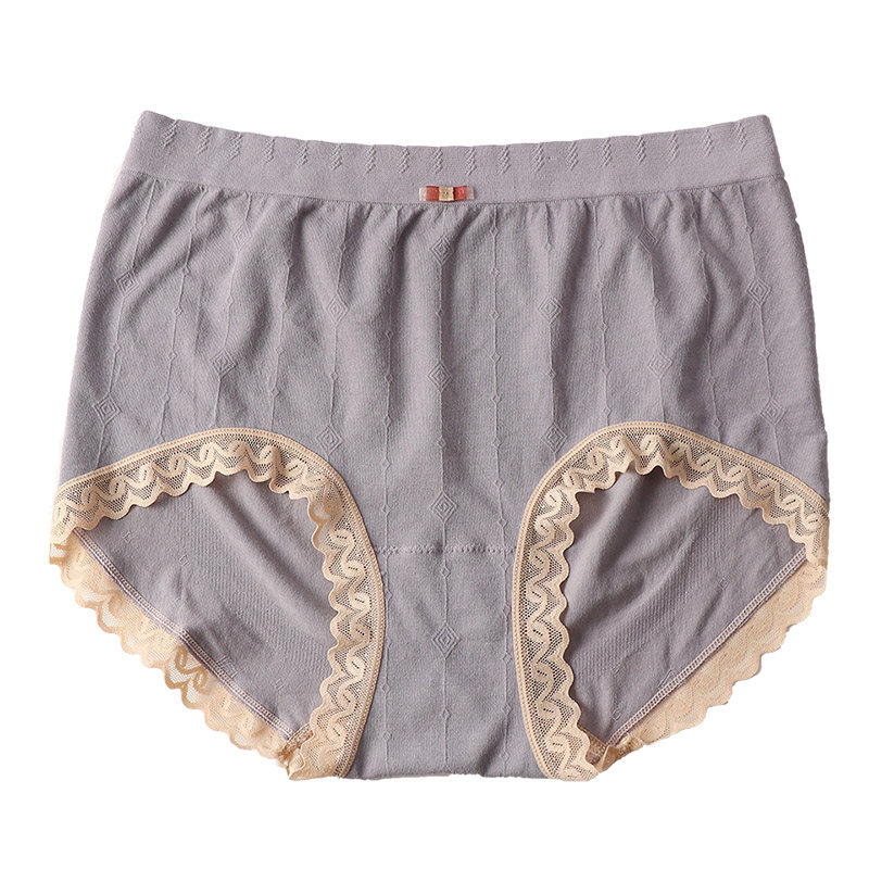 Large size underpants woman fat MM200 catty high waist antibacterial pure cotton crotch triangular pants closed with lace lace comfortable and soft nude