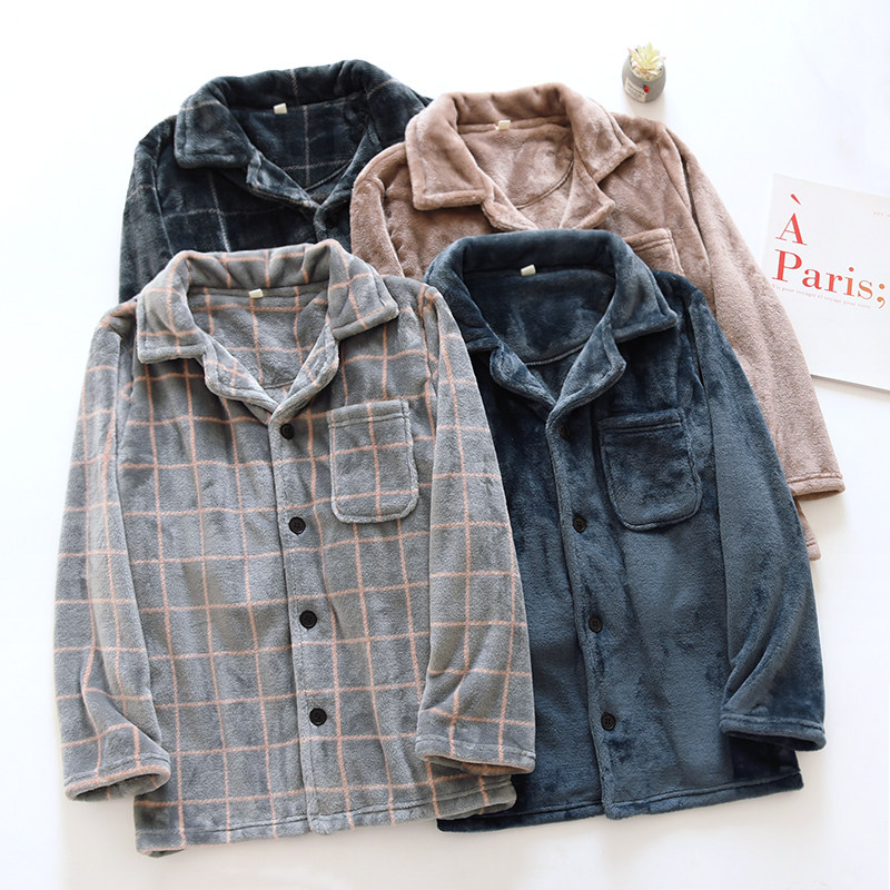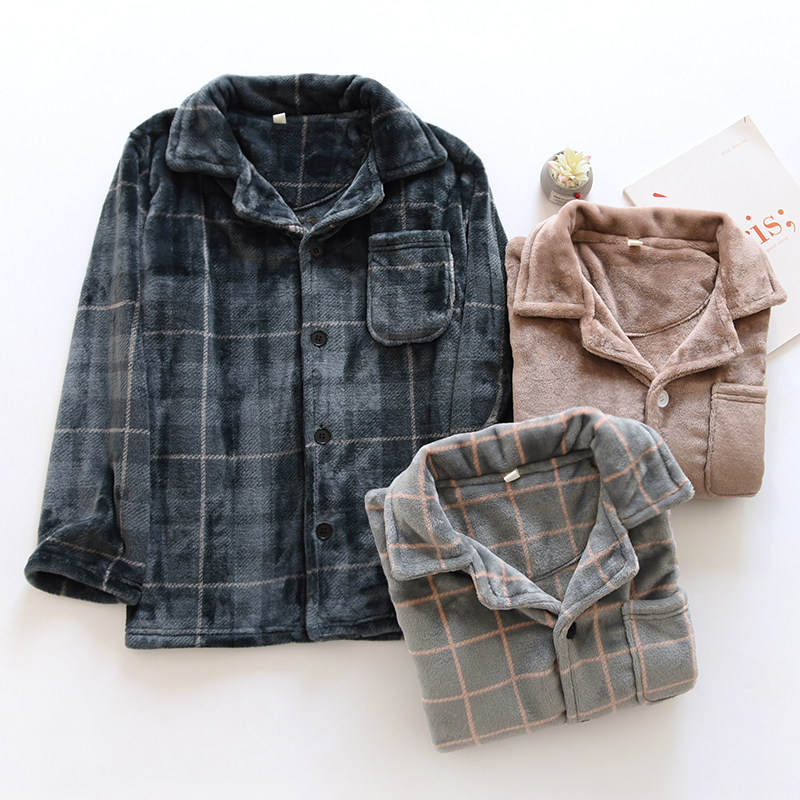 Day Ensemble Flannel home Jacket Single Blouse Blouse Men's Winter Plus Suede Thickened Warm Plaid Casual Coral Suede Cardiovert