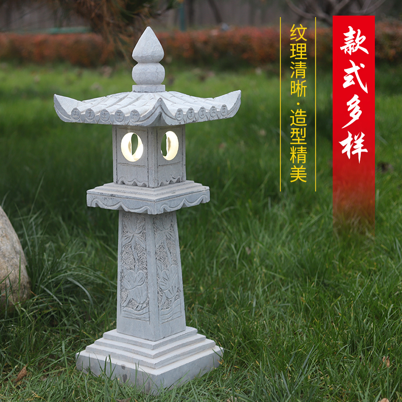 Stone carved lantern stone lantern solar stone lamp courtyard villa view garden stone lamp antique Chinese furnishings