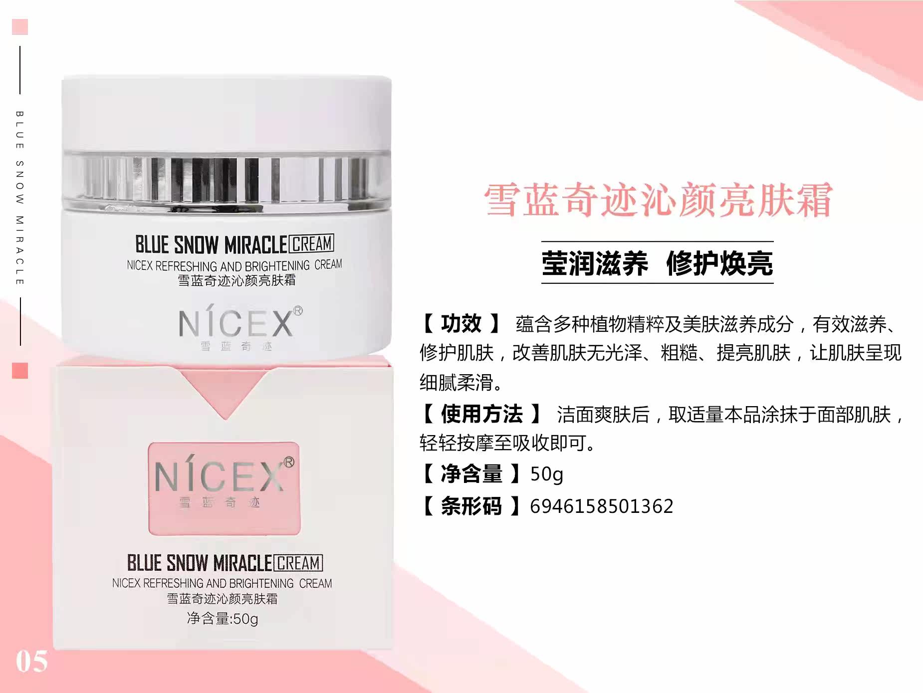 Nanxue Snow Blue Miracle Brightening Cream 50g moisturizing moisturizing cream to brighten skin tone and improve dullness
