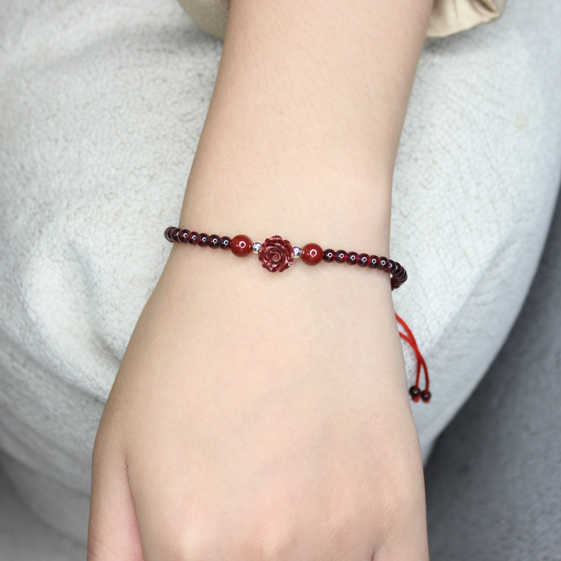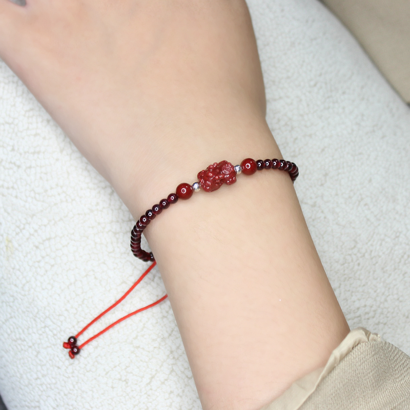 This Life Year Red Hand Rope Tiger's Sand Raw Shaw Good Luck Beads Red Rope Handcrafted rope Pomegranate Pomegranate Stone Hand-made Female Constellations