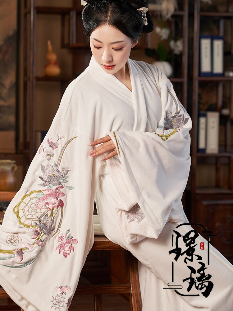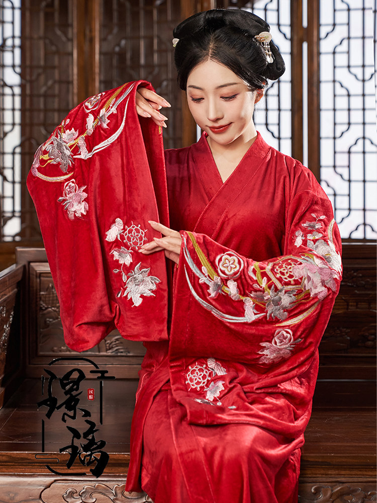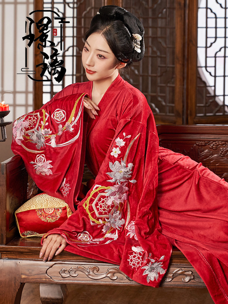 Jinggla original design of the ancient air embroidery ancient style double-face velvet Chinese wedding bride dressing robe dressing gown Han dressing woman