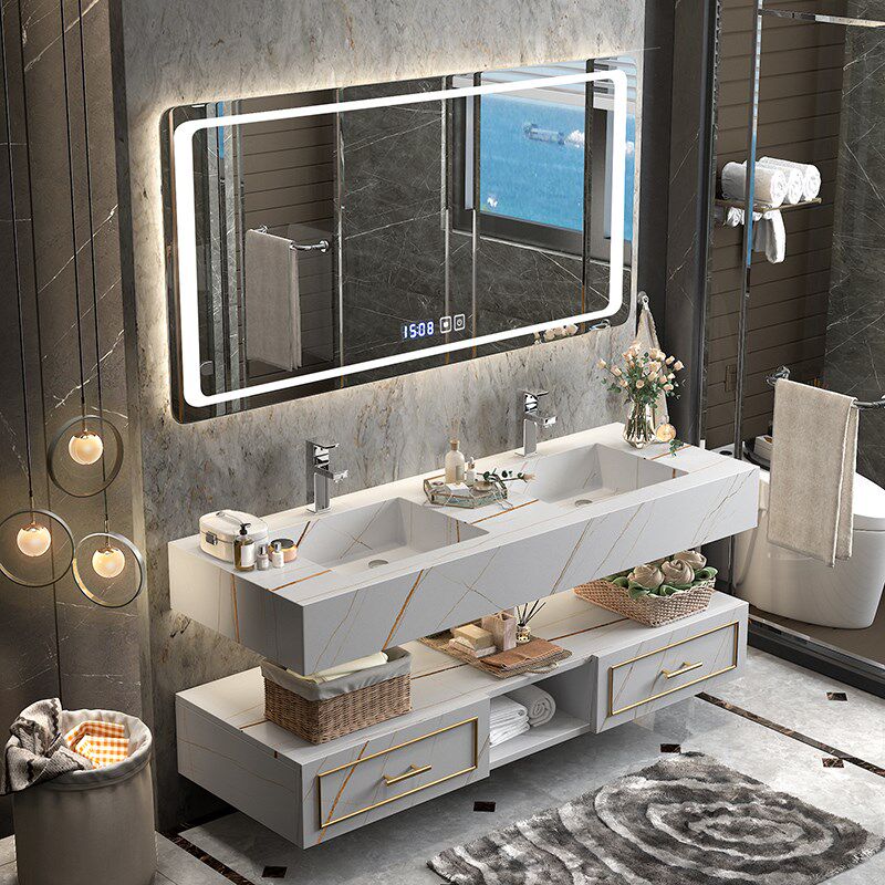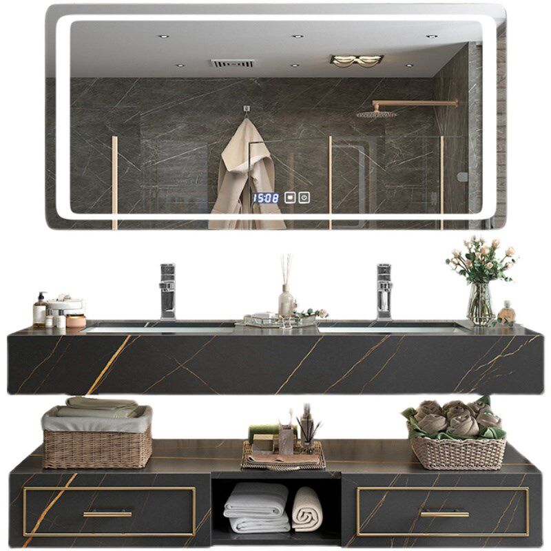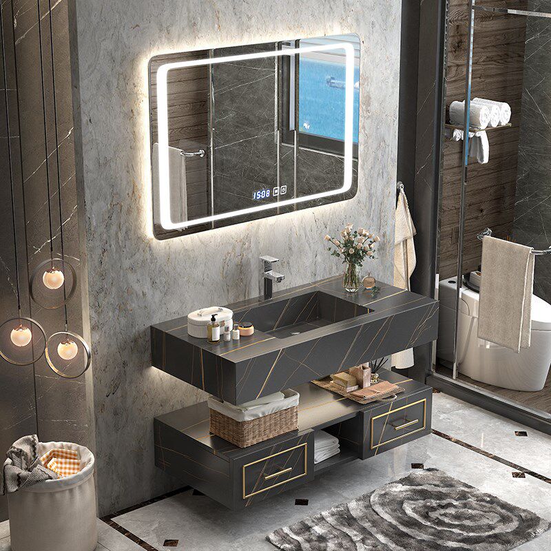 Bathroom Cabinet Mirror Cabinet Combination Light Luxury Slate One Basin Simple Modern Double Slot Washbasin Powder Room Washbasin Cabinet Customization
