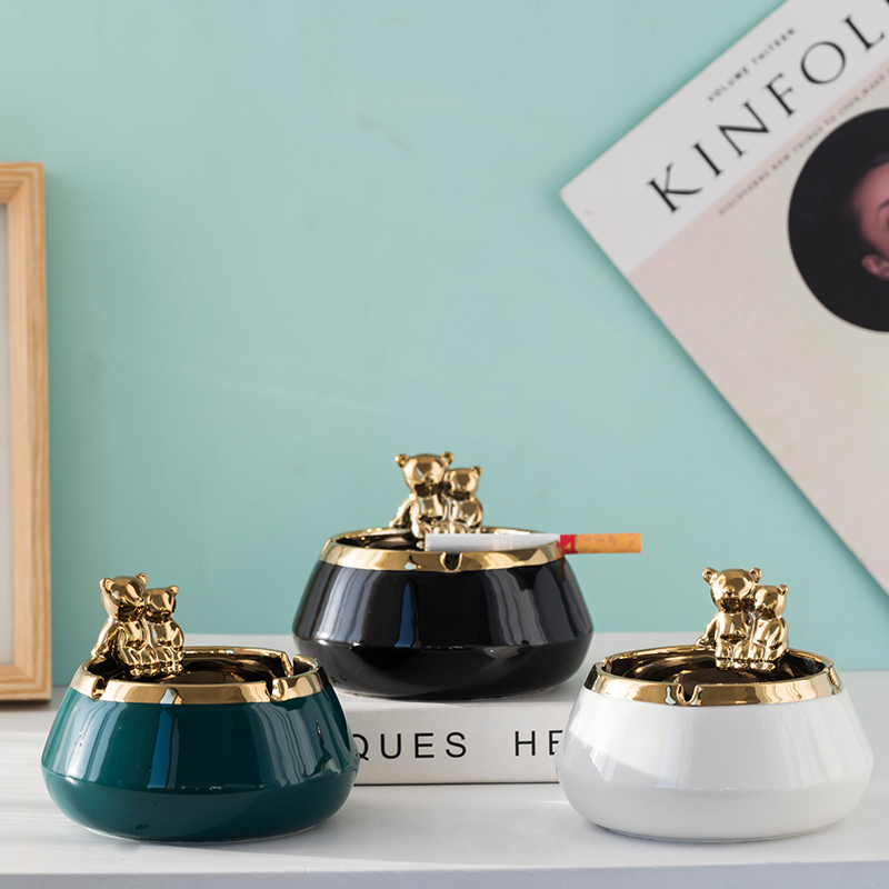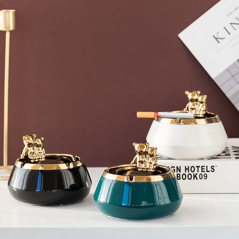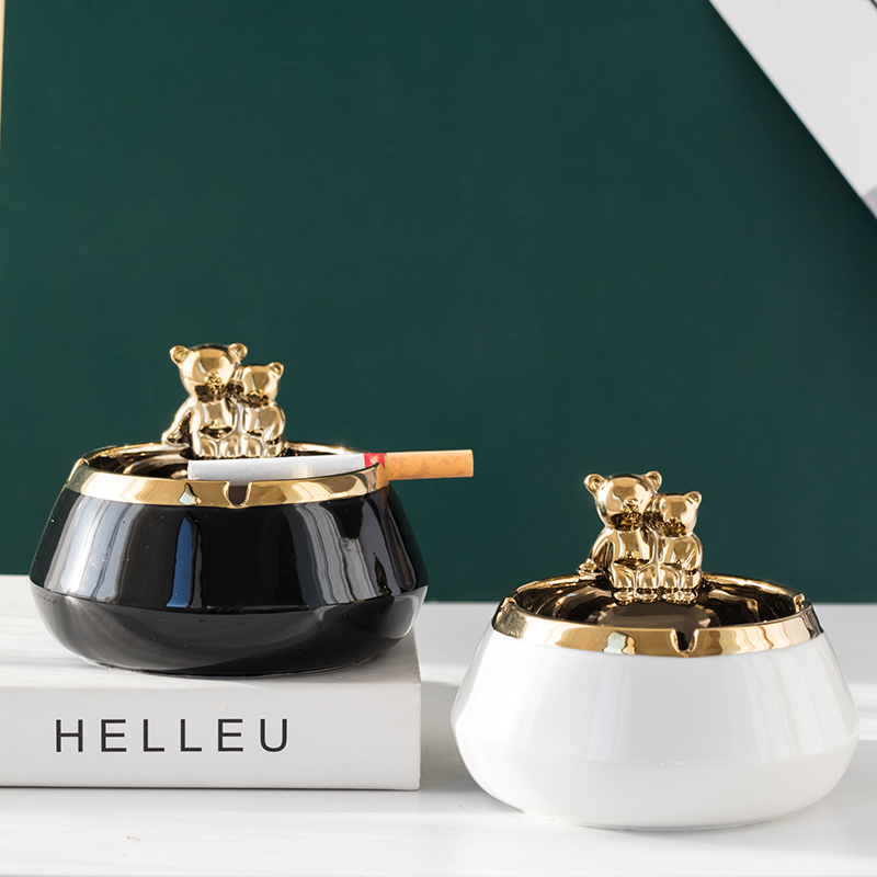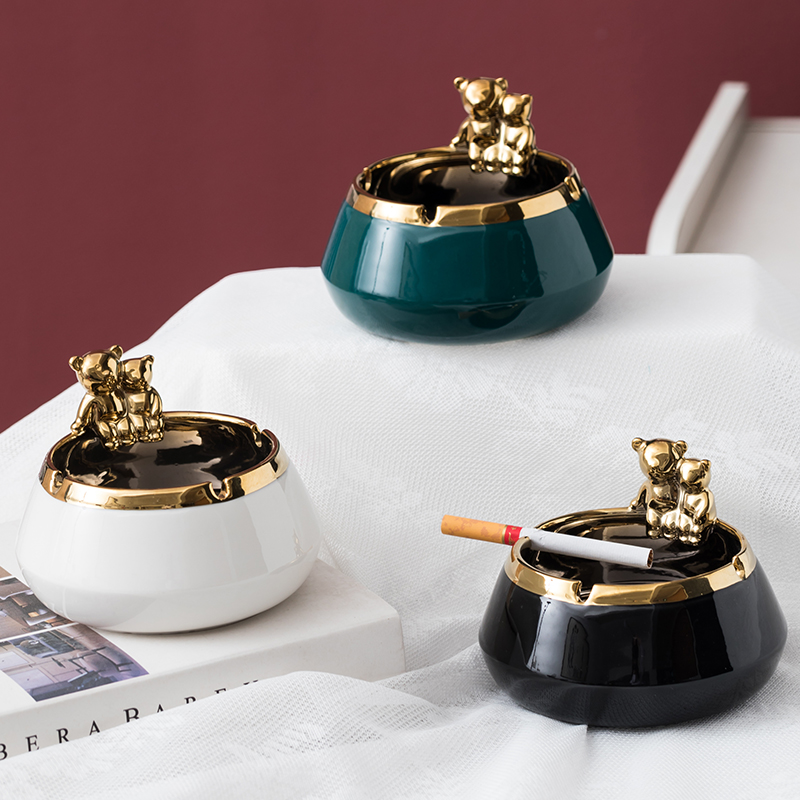Nordic Ins Wind Small Bear Light Extravagant Ashtray Home Living Room Creative Personality Trend Office Windproof Ashtray