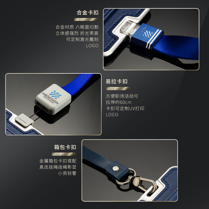 Aluminum alloy genuine leather employees work card custom work card chest card hanging number plate set to do work certificate and make a hanging rope
