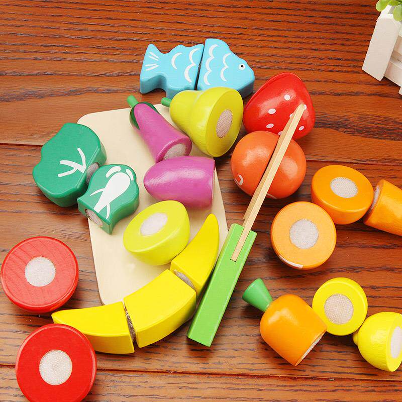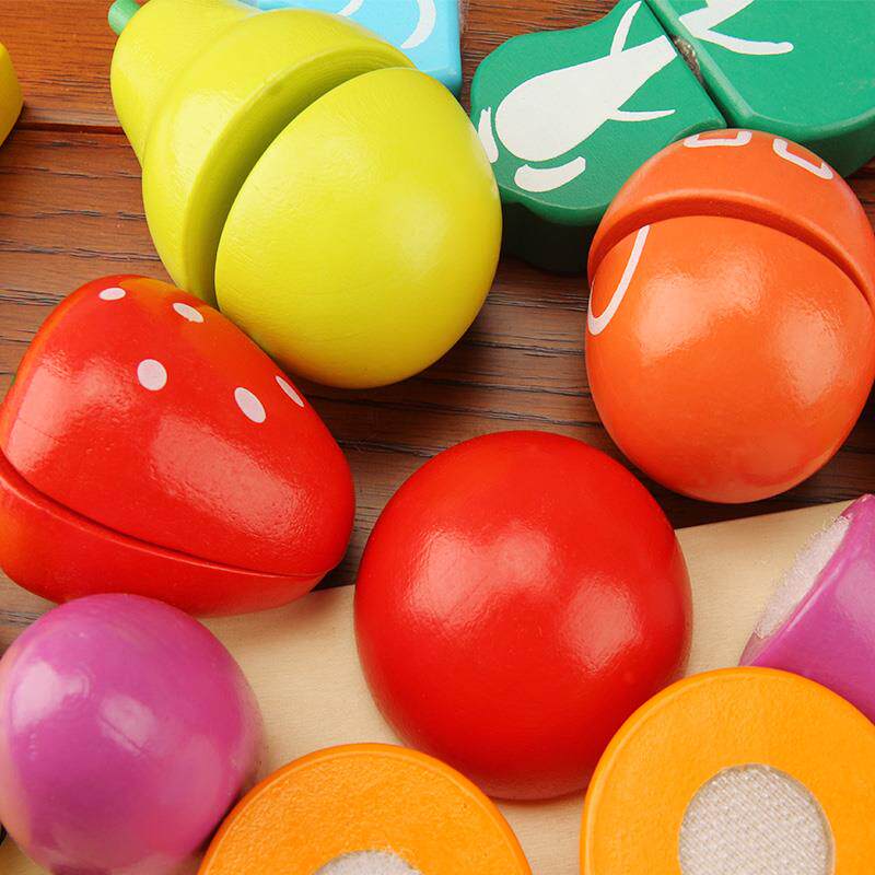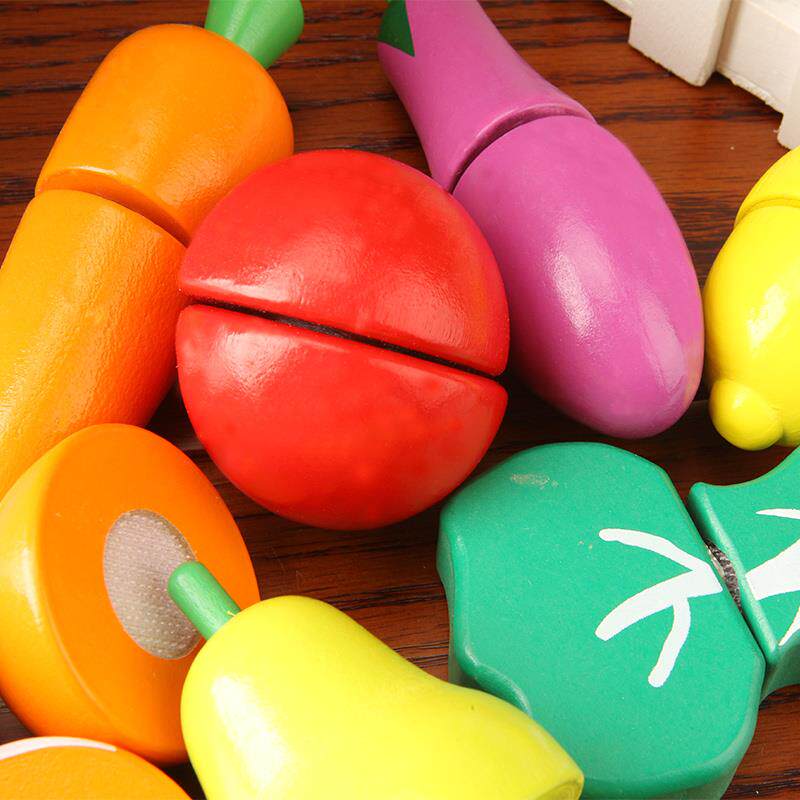 Wooden fruits and vegetables hook and loop chicao toys barrel boys and girls baby play home wine kitchen chicao