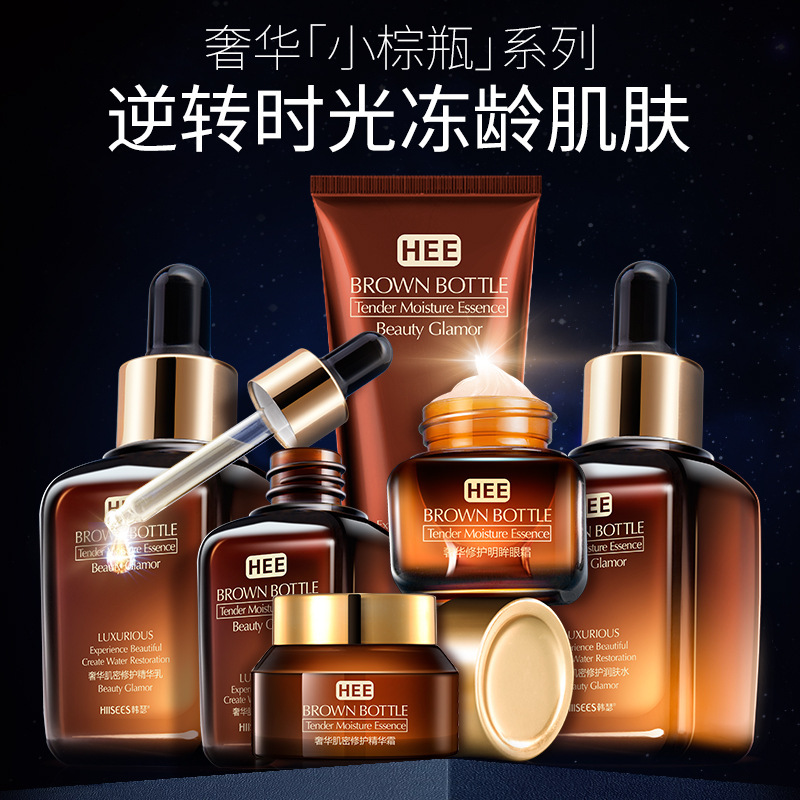 Hanse small brown bottle 6-piece set female hydrating moisturizing repair essence water milk skin care product set six-piece set
