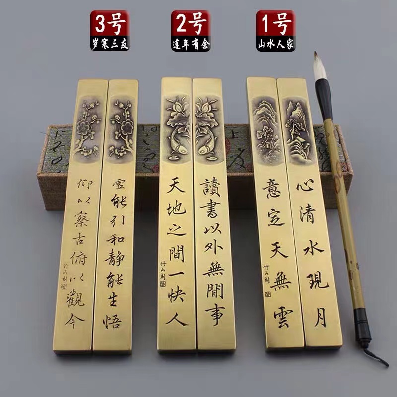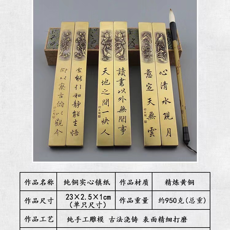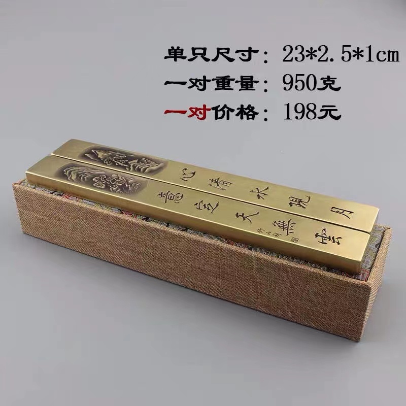 Pure copper brass solid town ruler paperweight calligraphy special pressure strip to make old antique engraving word study four treasures office