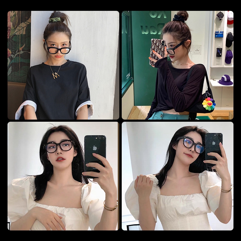 gm black frame glasses big frame plates fashion optical vegan glasses frame men and women with myopia degree lenses rack-Taobao
