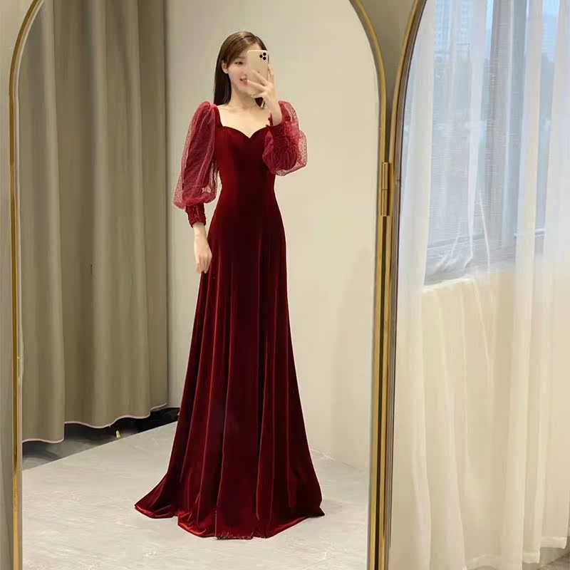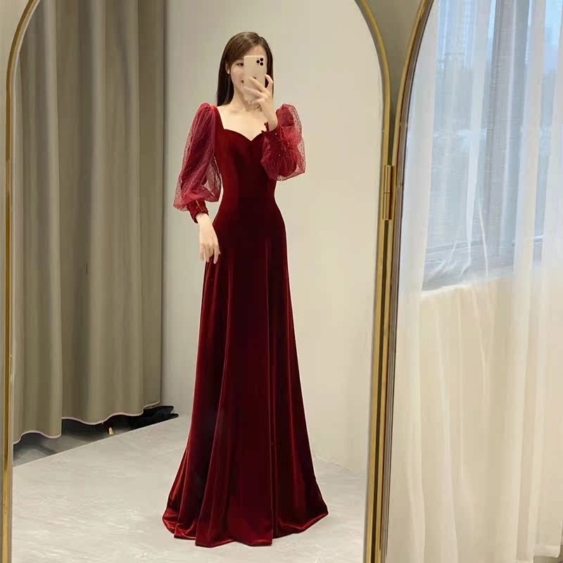 Toast bride long sleeve covered arm marriage engagement answer for long menu dress