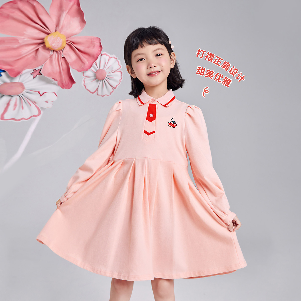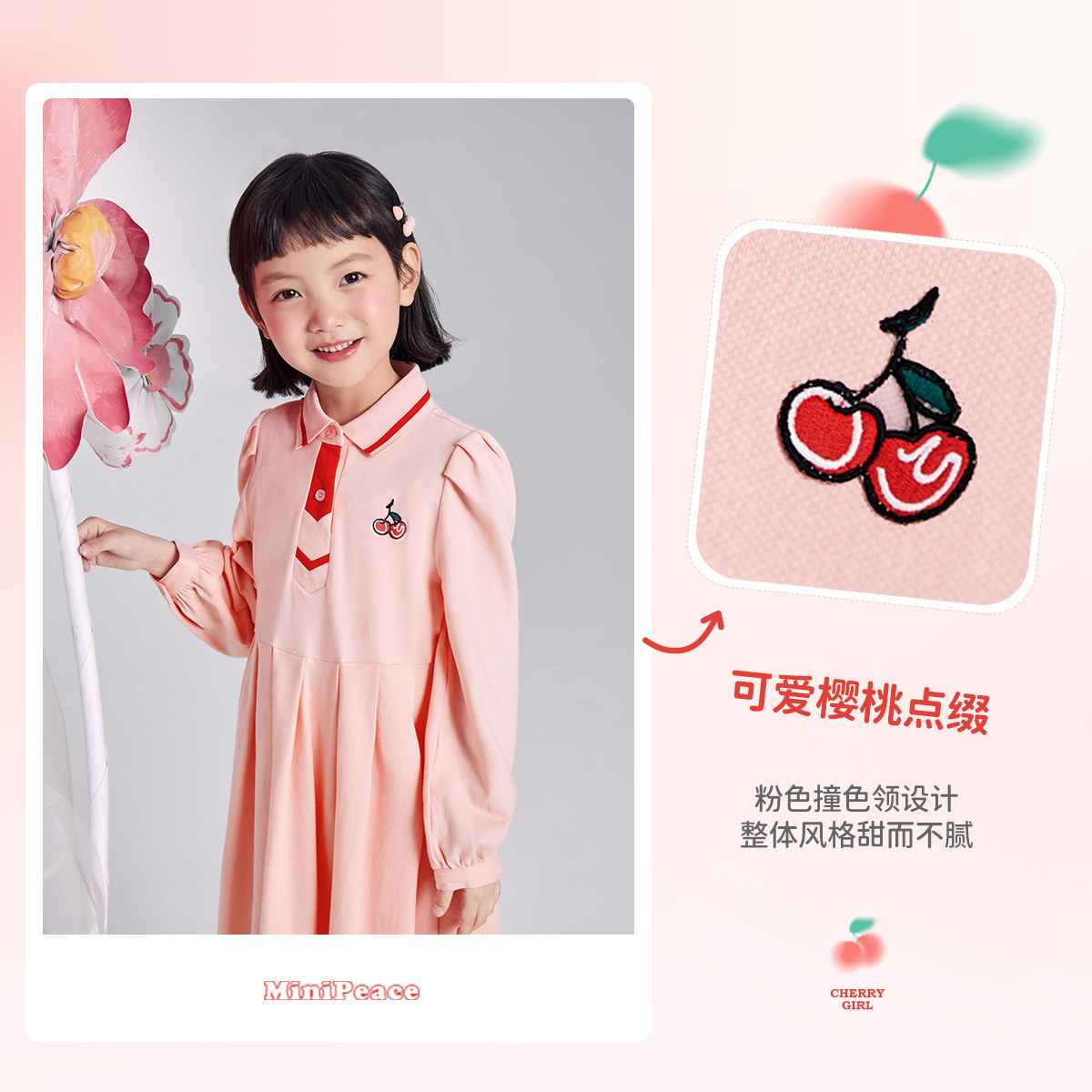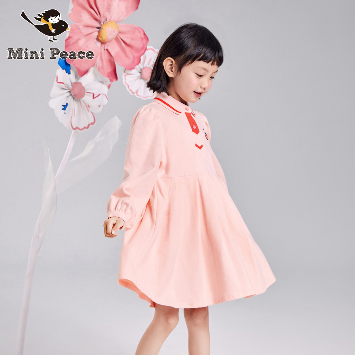 minipeace Taiping bird children dress girl foreign dress 22 spring new children POLO collar Academy wind long sleeve dress