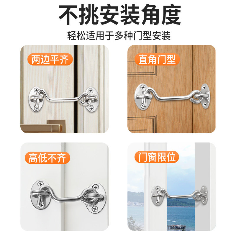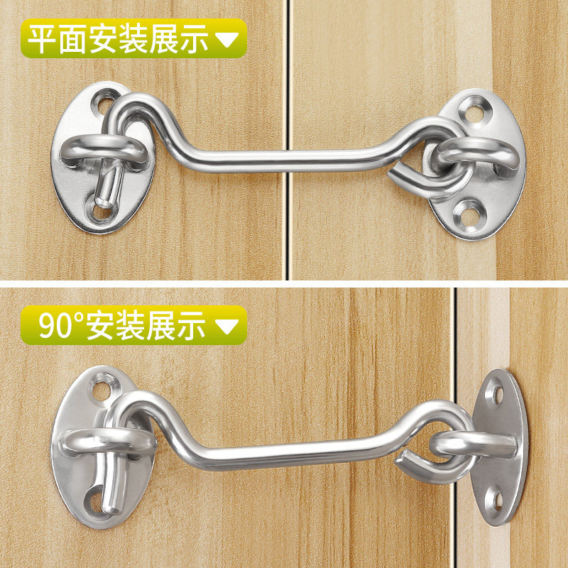 Stainless steel door bolt iron long wind hook free punch latch lock old-fashioned fixed anti-theft wind push-pull window hanging hook