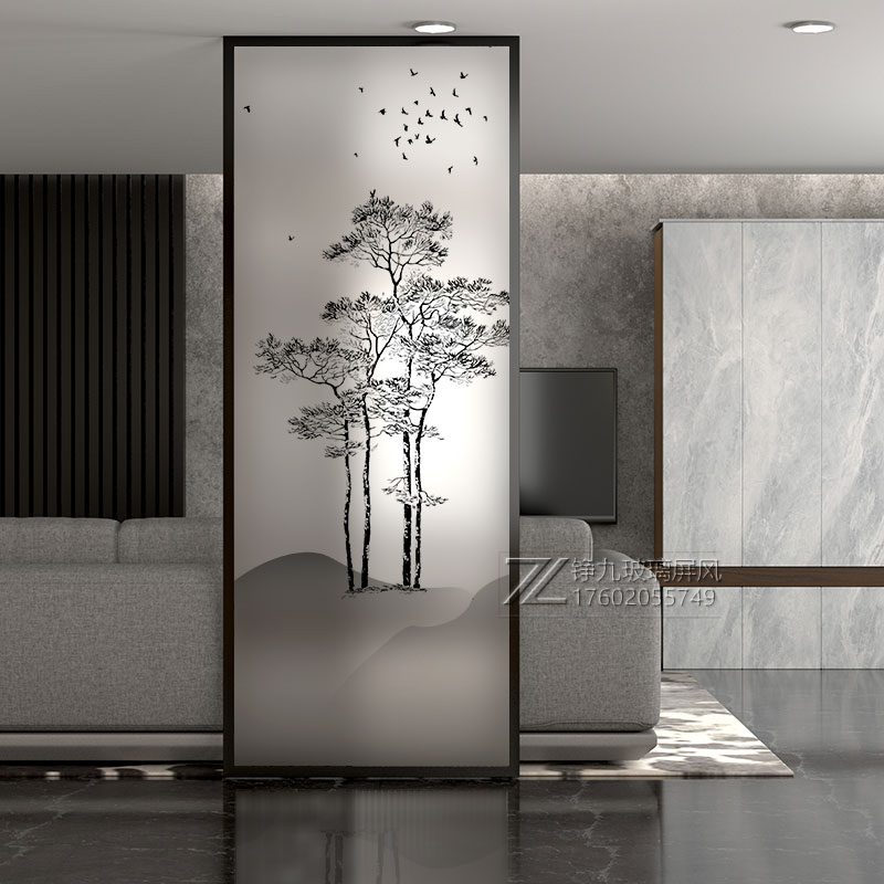 Custom colored art glass screen partition modern minimalist living room entrance door shoe cabinet bathroom porch matte