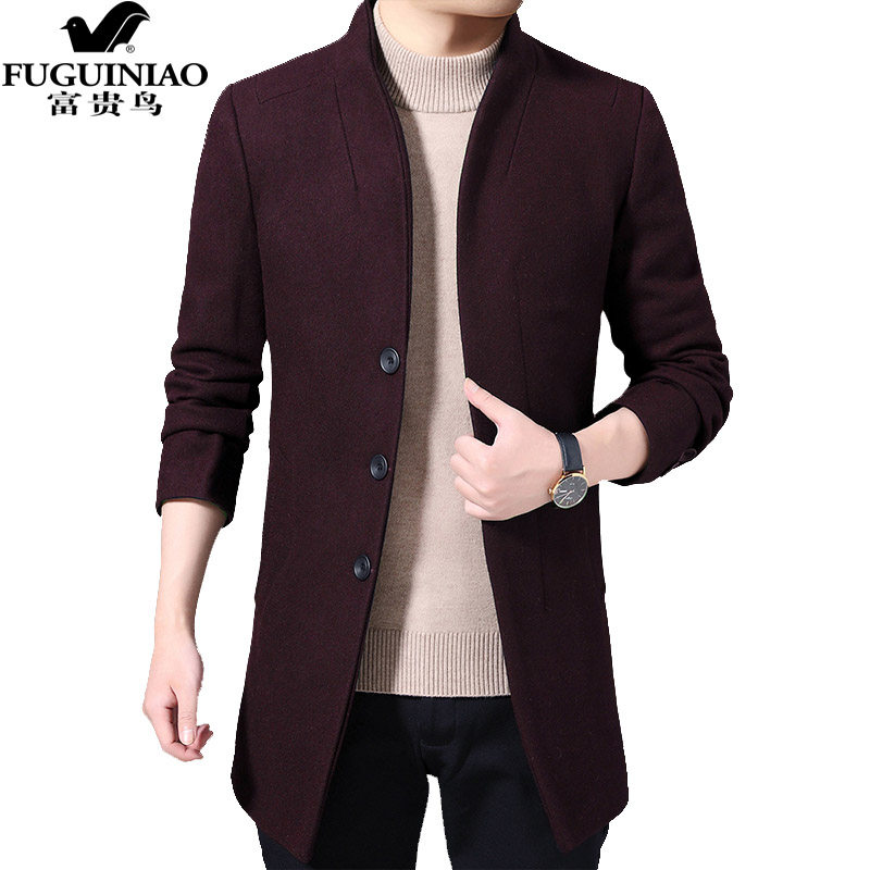 Fugui bird men's suit jacket Mao, woolen coat men's mid-autumn winter fashion Casual Thickened Business Suit
