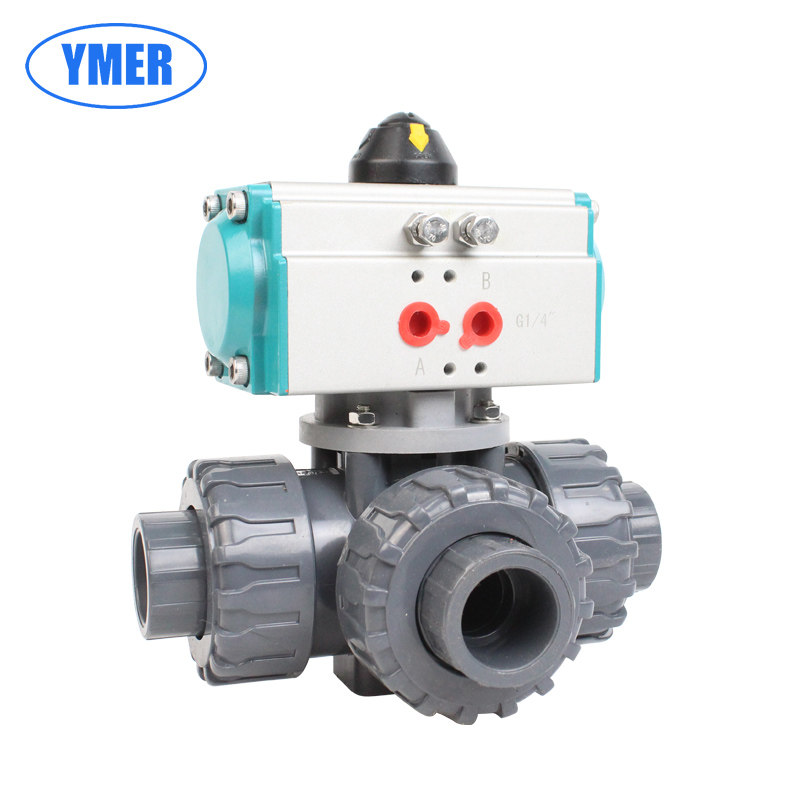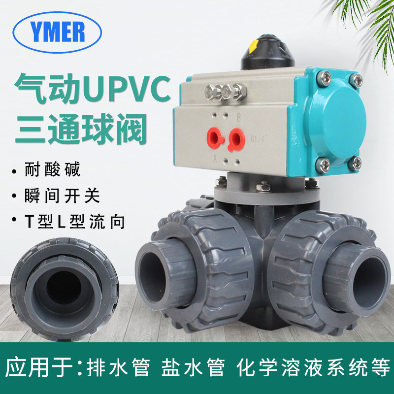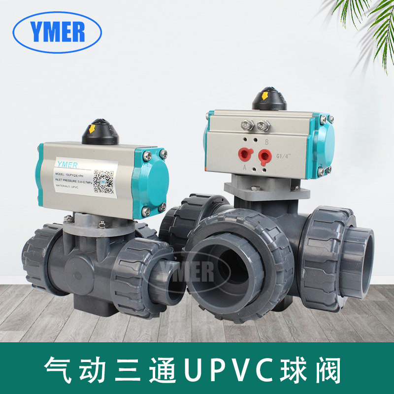 UPVC pneumatic double - acting three - way ball valve is made T type L to valve PVC acid resistant anti - corrosion