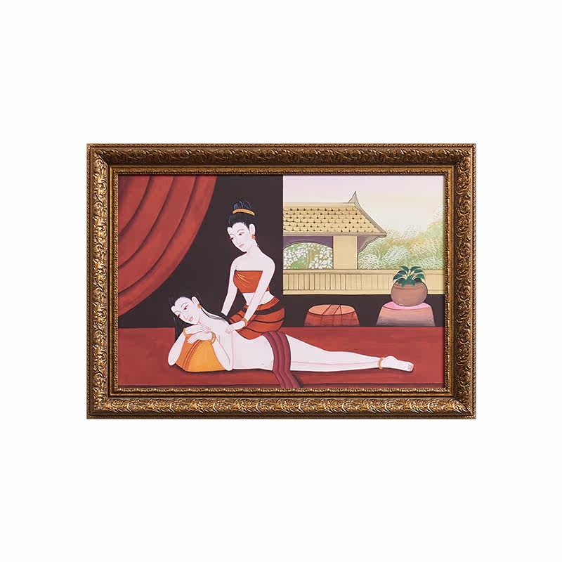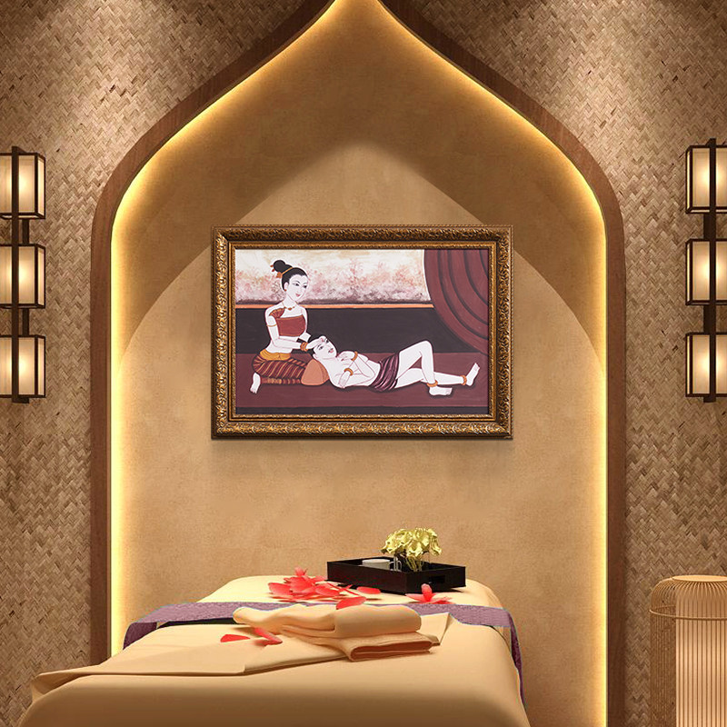Tai Domain Thai Massage Characters Living Room Wall Decoration Painting Thai Style SPA Massage Shop Entrance Into The Family Genguan Micro Spray Painting