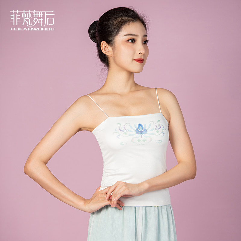 Fivan Dance Post-classical Dance Exercises Harness Printed Vest Slats Bottom Blouses Chinese Dance Suit Women Feel