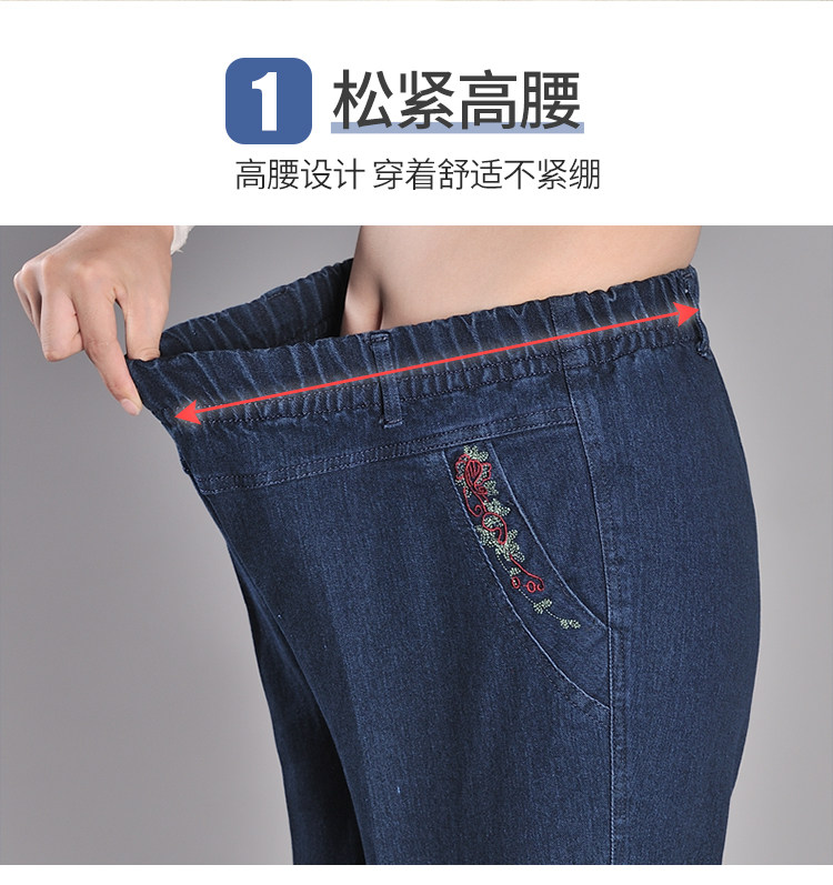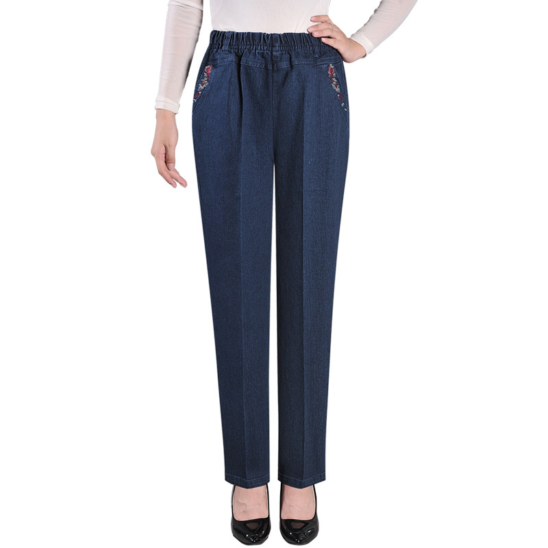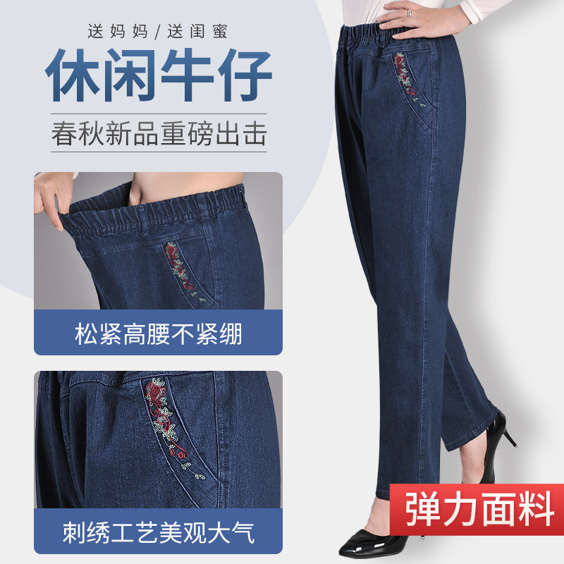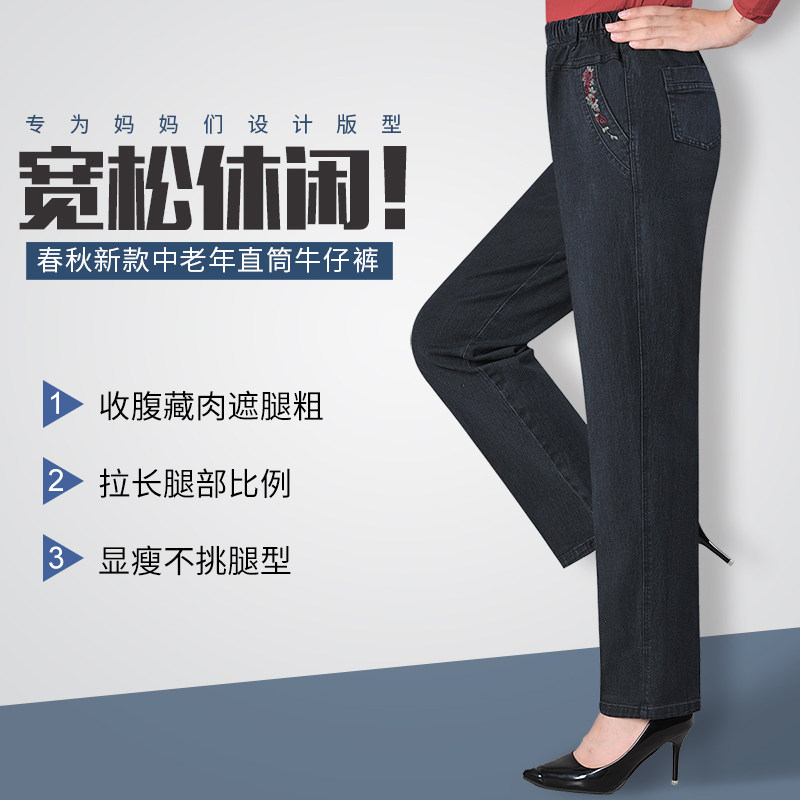 Middle Aged Spring Autumn Mom Jeans Woman Loose Black Tightness Waist Elastic Large Size Casual Women Pants Straight Barrel Long Pants