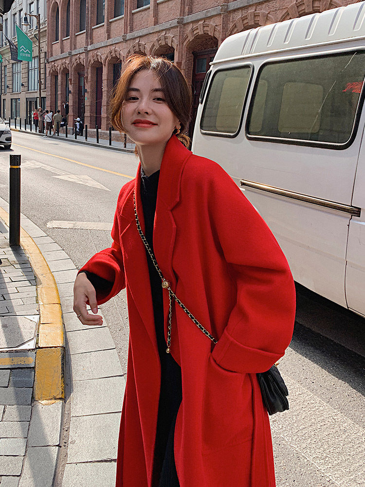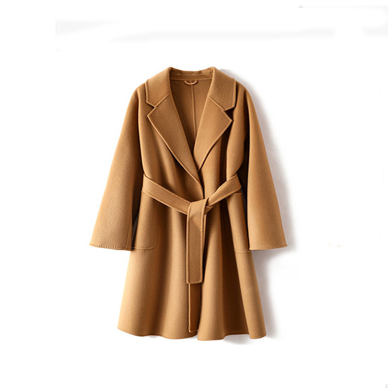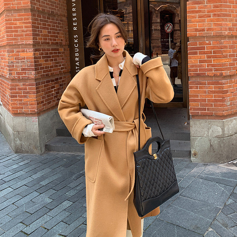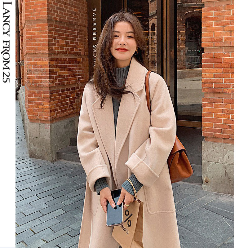 Langzi women's 2022 winter new double-sided cashmere coat women's long version loose 100% woolen coat women