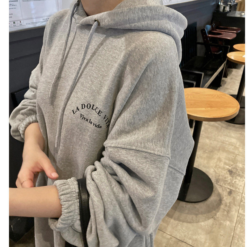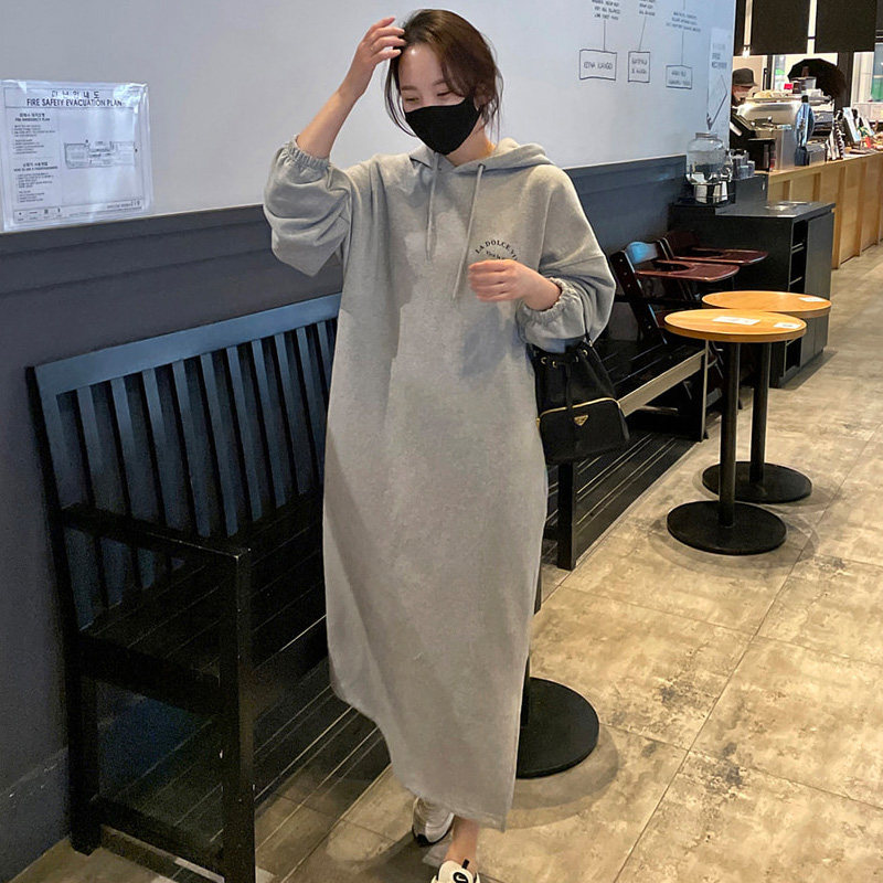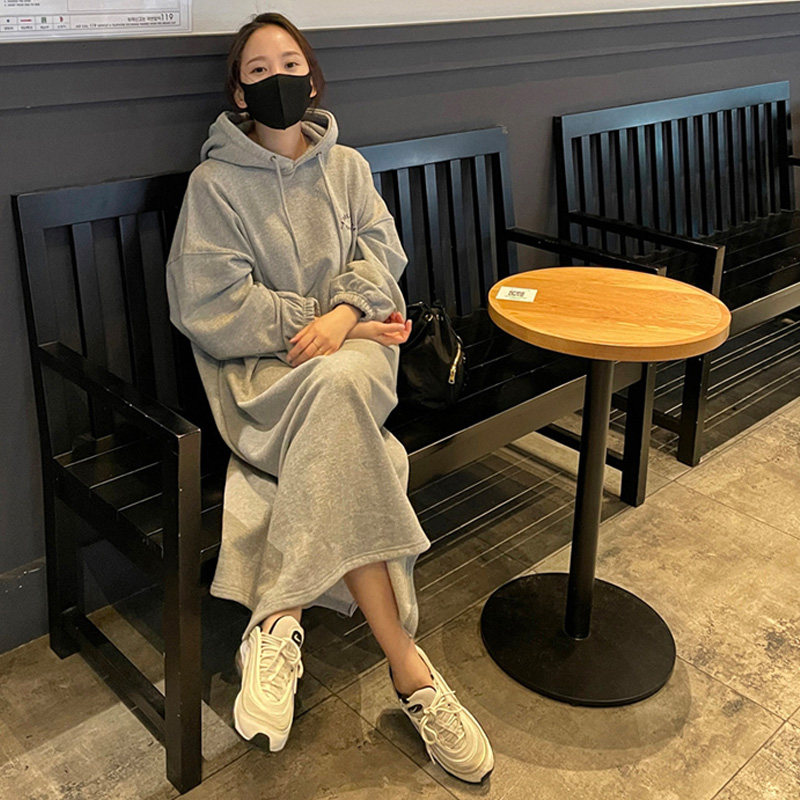 Japan sly 2021 autumn and winter style leisure Lianhood headlong version of thick cotton T woman with a long version of a knee dress