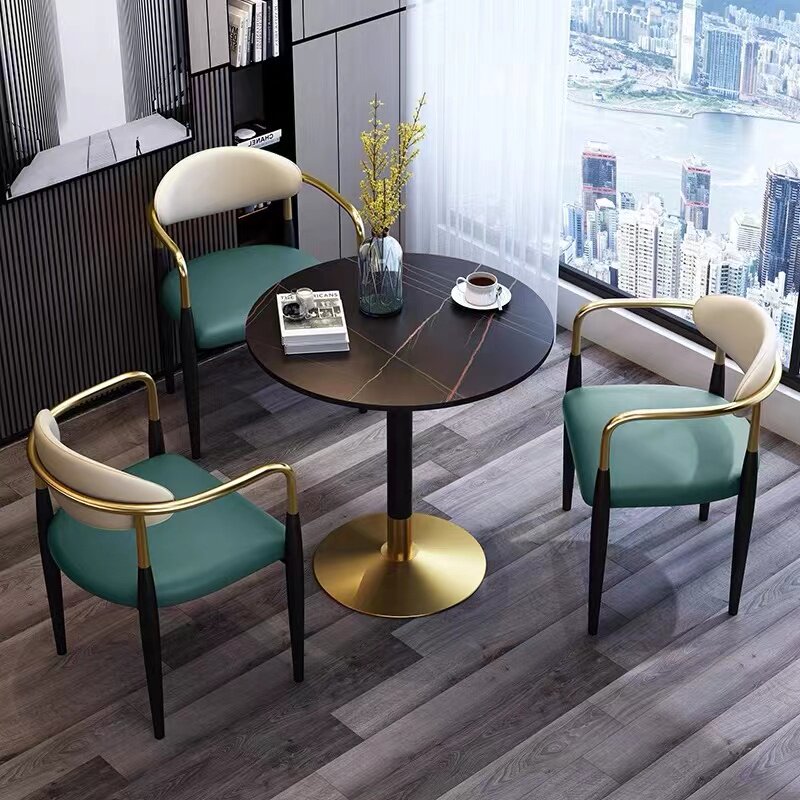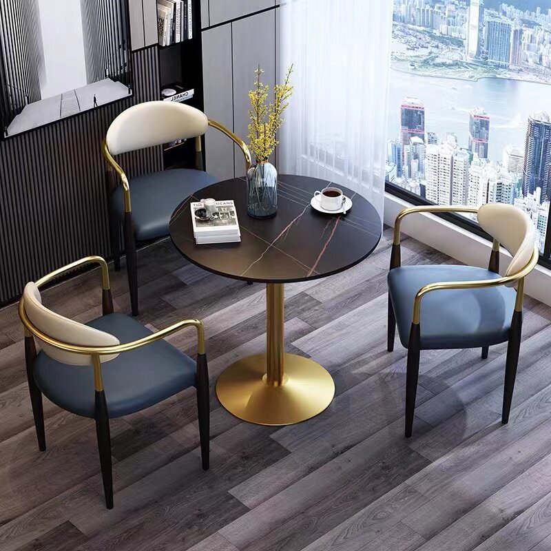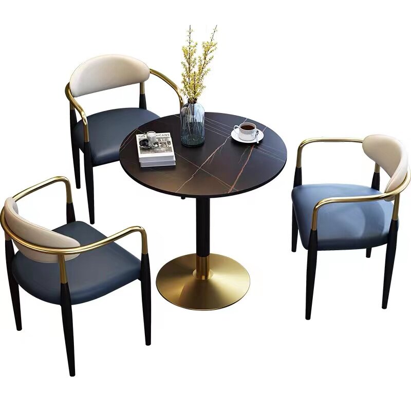 Nordic Minimalist Home Rock Plate Small Round Table Sample House Display Center Reception Negotiation Table And Chairs Combined Milk Tea Shop Casual Table