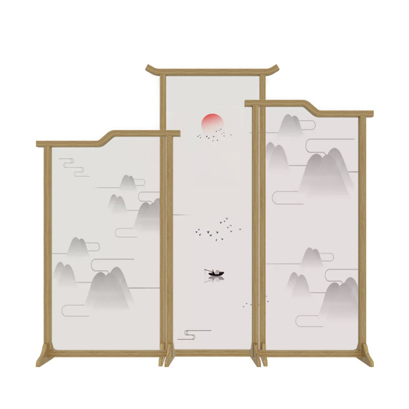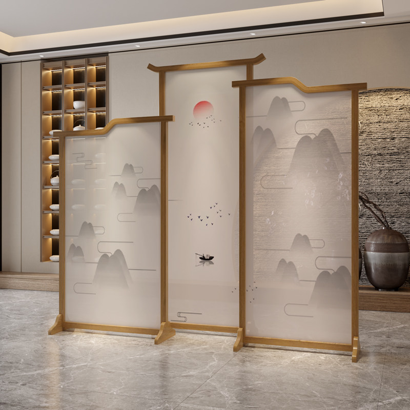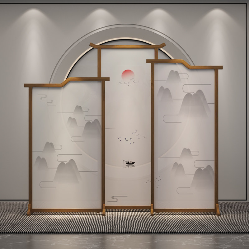 Tea Room Screen Partition Obstructed minimalist meditation New Chinese landscape Living room Dining Room Hotel Clubhouse Semi-Overdraft Solid Wood Holder