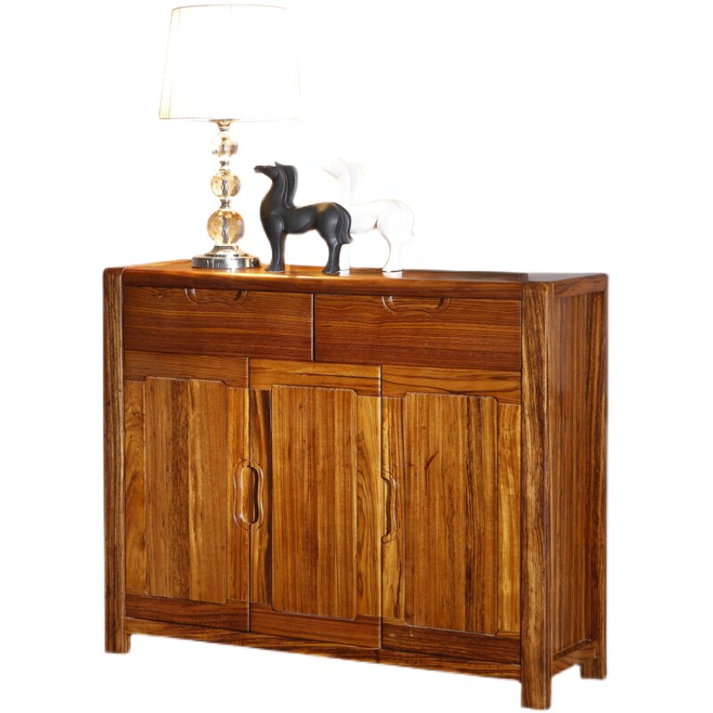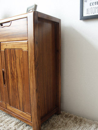 Ebony wood shoe cabinet all solid wood hall cabinet log ebony wood 3-door locker simple modern multi-functional drawer
