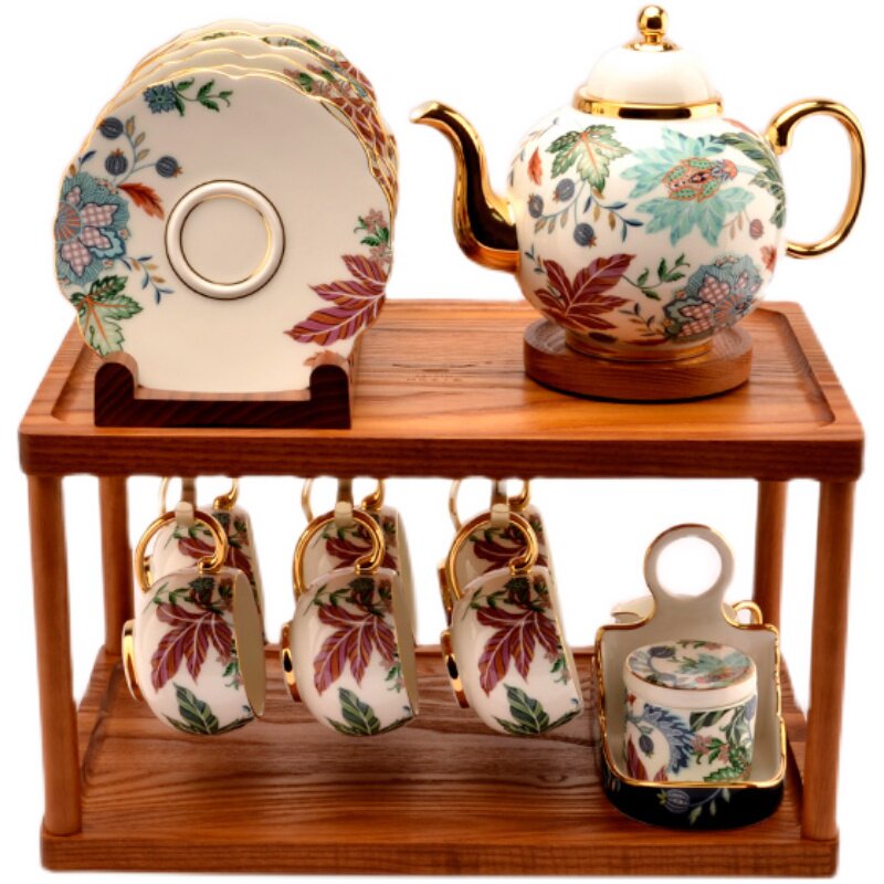 18 tea set full 1100 ML teapot 180 ML cup a plate of milk cup cup cup cup cup for display wood frame