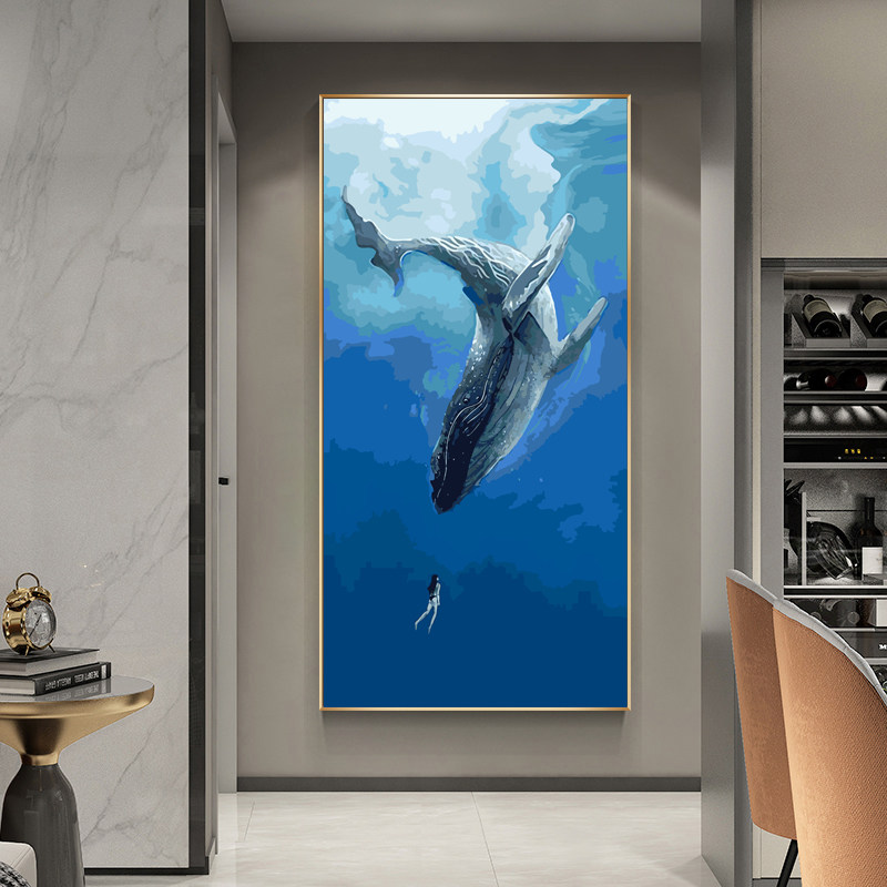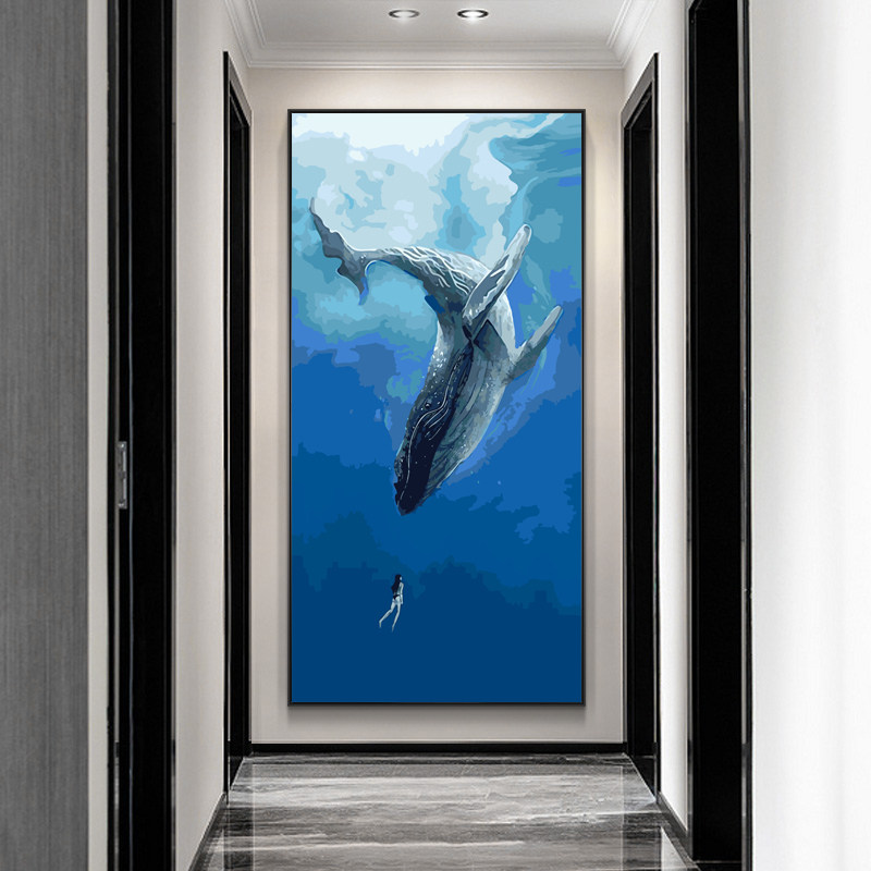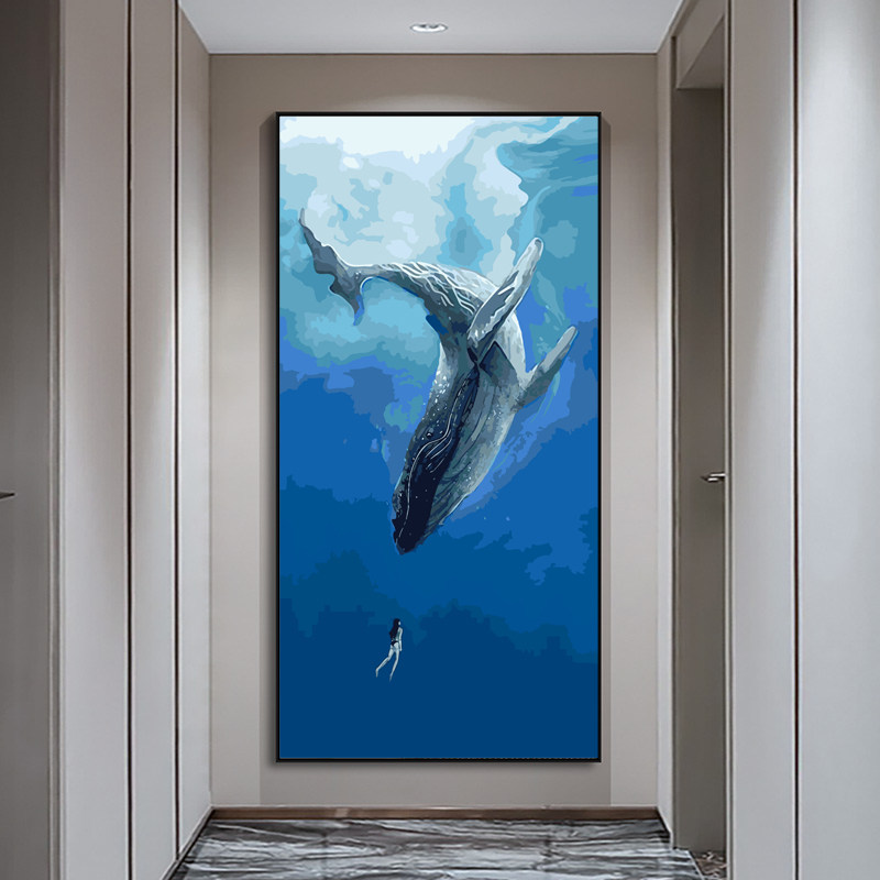 Nordic diy digital oil painting large size deep sea blue whale coloring living room porch decoration huge corridor oil painting