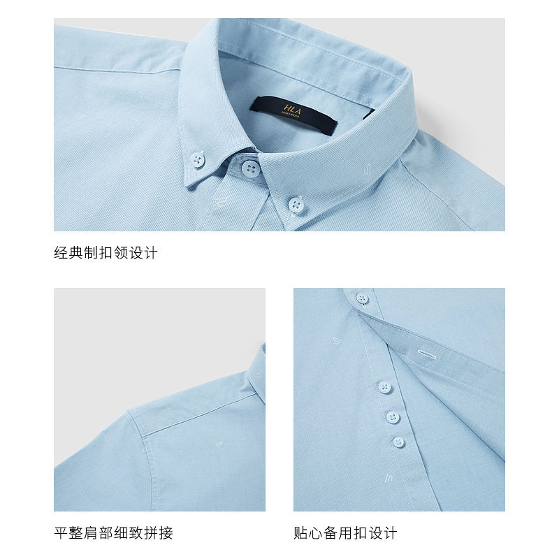 HLA Heilan House comfortable microbomb short - sleeve casual shirt simple generous washing process shirt man